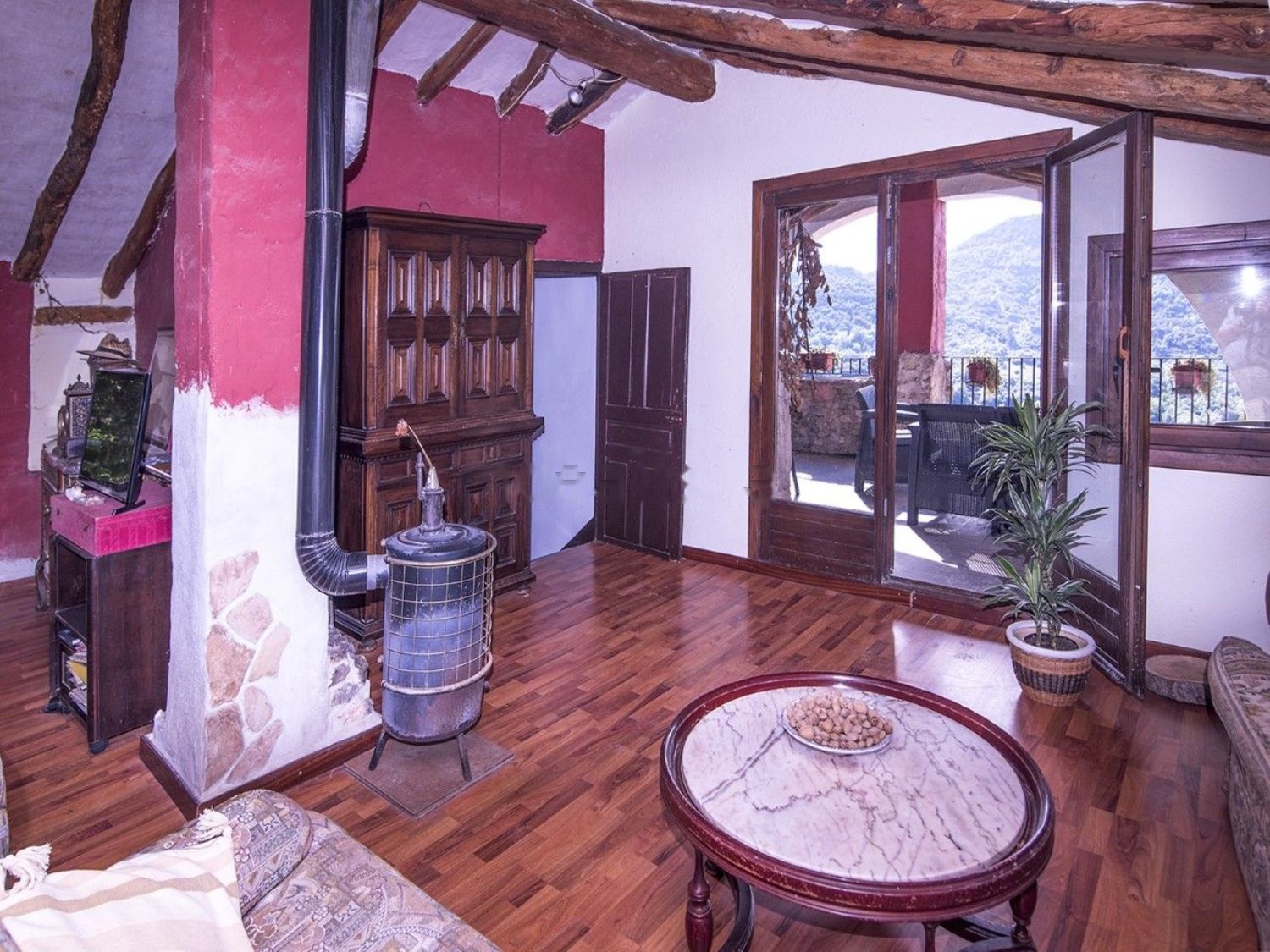 Casa Marro es una casa de pueblo, con espacios muy amplios, de pb + 2, a tres vientos, con una superficie construida de 345m2 en 3 plantas. Incluye una gran terraza con vistas al pirineo, una parcela con jardín, aparcamiento ( 4 coches), y garaje independiente cerrado para gran vehículo.