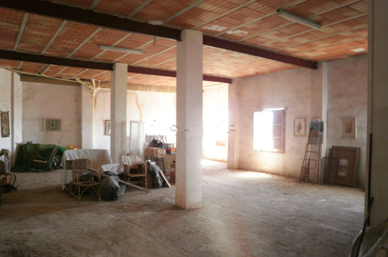 Garaje diáfano bajo la casa, con gran espacio para varios vehículos y almacenaje.