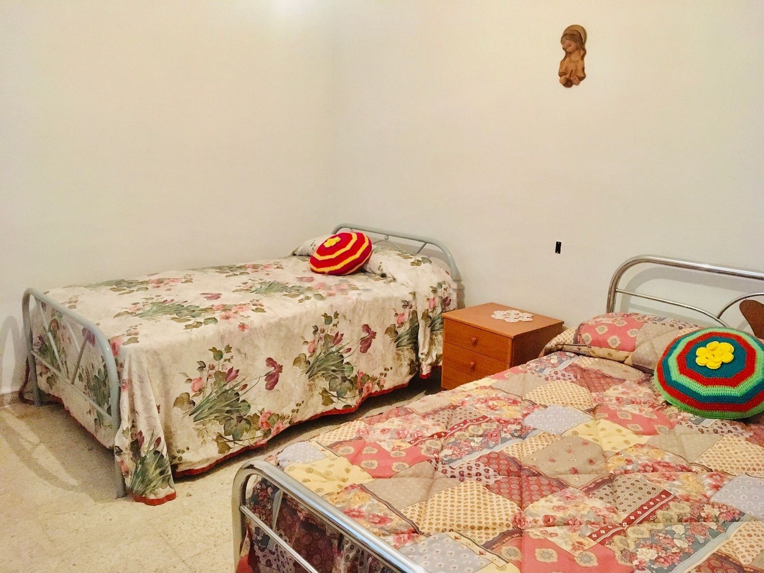 La planta de arriba está formada por tres amplías habitaciones con camas de matrimonio, salón comedor, puerta de acceso a la calle desde aquí. Por último tiene una gran buhardilla para reformar en una tercera planta.