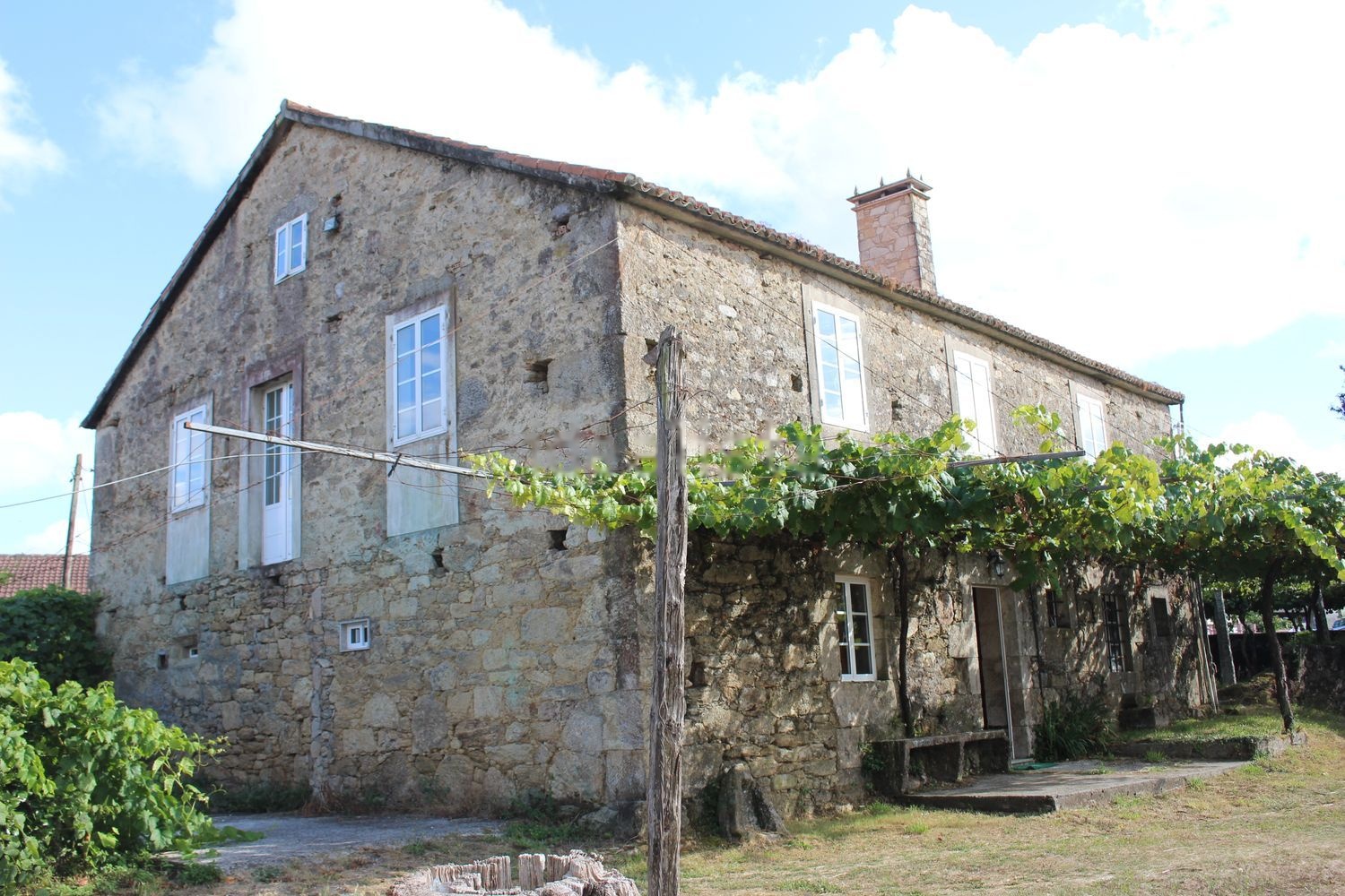 Se sitúa en una finca de 2.800 m2 con hórreo, alpendres, establo, pozo, lavadero, totalmente rodeada por un centenario muro de piedra y viña.