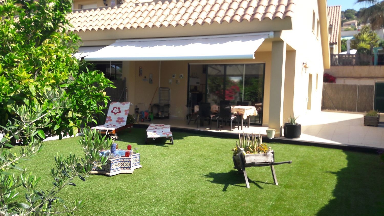 Casa unifamiliar adosada en esquina. Ideal para vivir en zona residencial cerca del mar y de zona de servicios. La casa goza de una inmejorable ubicación. Está en La Urb. La Levantina de Sitges (Barcelona), junto al club de tenis y a 8 minutos de la playa, caminando. A 6 minutos a pie de supermercado, guardería y todo tipo de servicios. La situación de la casa es de muy fácil acceso al centro ya que se llega caminando en 15 minutos, y está al lado la parada de autobús. Ideal para vivir todo el año