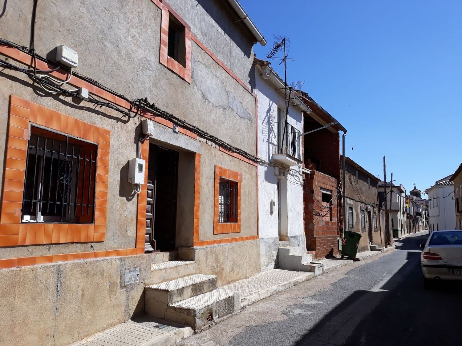 Fachada principal en calle Cervantes, nº30, mirando sur, pasillo de entrada central con dos habitaciones a cada lado, cocina con chimenea de leña, Baño, patio con un pozo de unos 10 metros de profundo, cámara sobre los cuatro dormitorios, corral con gallineros, una antigua cuadra y pajera que se usan como trasteros, cochera en calle Virgen de la Antigua.