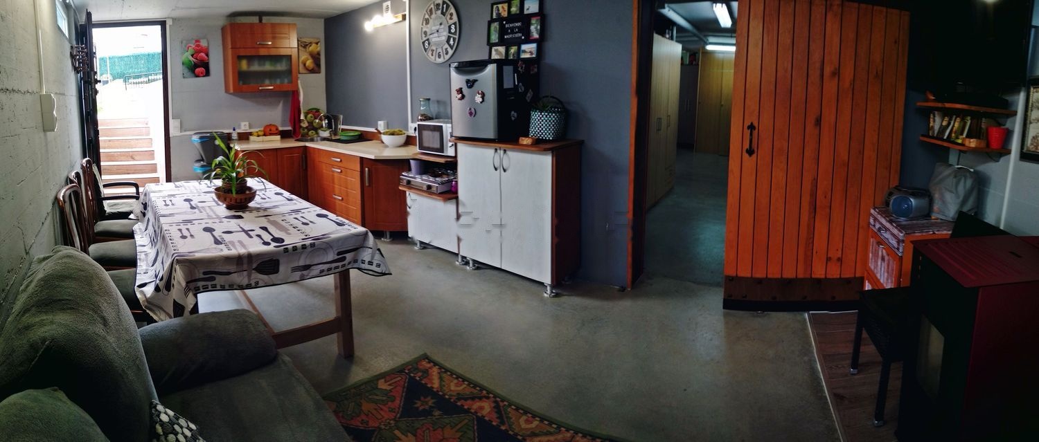 En la planta sótano se encuentra el garaje con una amplia zona de trabajo, y dos armarios empotrados utilizados como trasteros, una bodega/despensa, un baño con ducha, una cocina con salón comedor que da acceso al jardín trasero y un cuarto acondicionado como dormitorio junto a las escaleras de acceso a la vivienda.