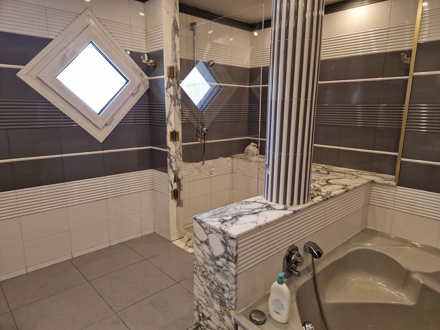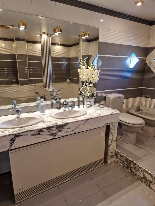 En la planta superior, encontramos una gran sala diáfana, zona de estudio y trabajo); un gran baño completo (con mármol negro, bañera de hidromasaje y ducha).