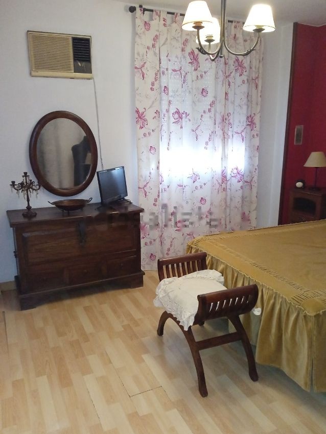 Casa Adosada en Tomares, situada en Santa Eufemia, La zona dotada con todos los servicios supermercados, centro comerciales, transportes, colegios, instituto, a 5 minutos de Sevilla, el inmueble de 115 mts 2, dispone de 3 dormitorios amplios antes 4, dos baños, uno en cada planta, cocina amplia muy luminosa con office y despensa, porche jardín delantero -garaje y patio trasero con trastero, casa ampliada, armarios empotrado, aire acondicionado en varias estancias, salón de 38 mts2, chimenea, cierre aluminio, puertas sapelly, suelo tarima flotante, terraza dormitorio principal, para entrar a vivir. Piscina comunitaria.