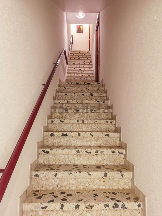 La casa superior tiene cocina con galería, baño completo, despensa, salón, tres dormitorios y balcón. En la casa inferior, que cuenta con dos plantas, encontramos un baño con ducha para personas con movilidad reducida, cocina, salón y cinco habitaciones (una de ellas con alcoba).