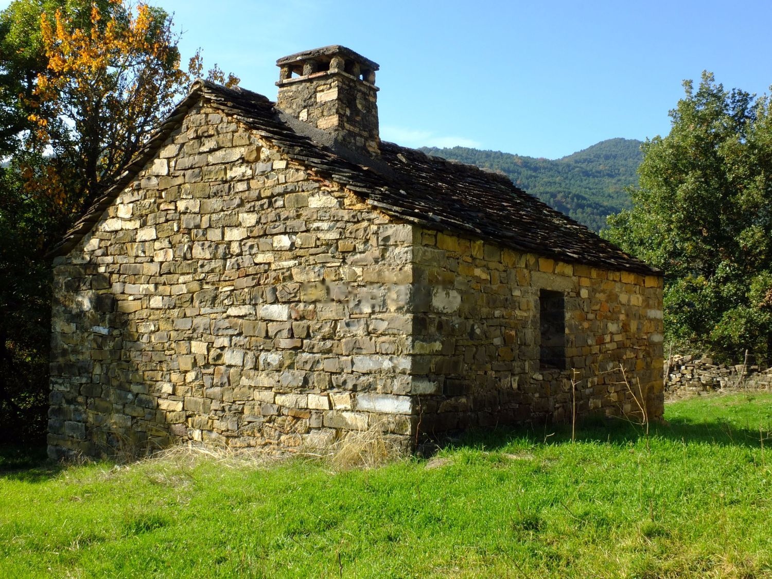 Borda de piedra en perfecto estado, situada en el valle de Hecho. Cuenta con una superficie de unos 260 m2 divididos en dos plantas diáfanas. Ubicada en un terreno de 49.500 m2 con unas impresionantes vistas al pirineo.