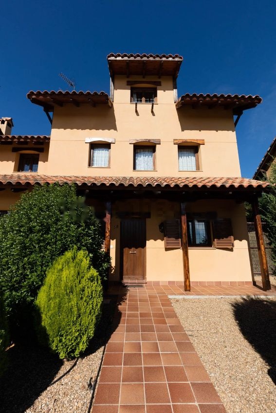 Pareado en perfecto estado junto al campo de golf (175 m2). Cocina amueblada, 3 habitaciones, 3 baños y aseo, salón con chimenea, buhardilla y jardín frontal y trasero privados. Calefacción de gasóleo depósito central con caldera individual.