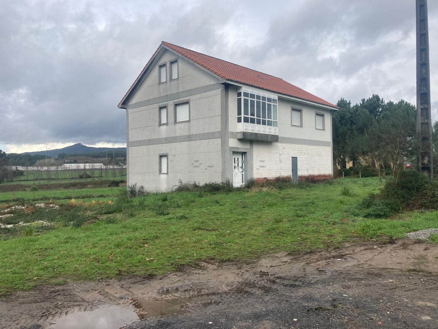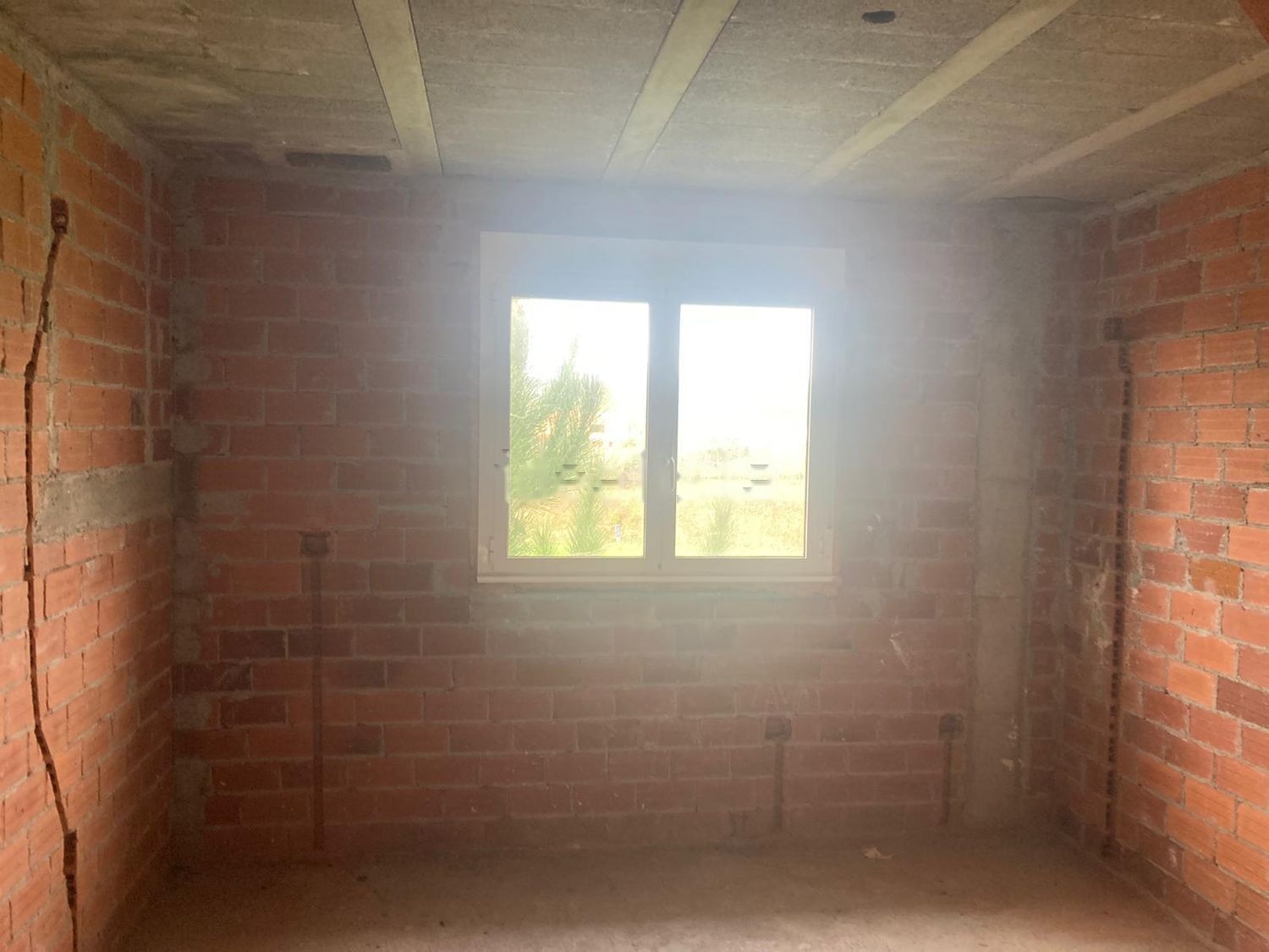 La casa esta terminada en la parte exterior pero la parte interior esta en obra, tiene luz y pozo para agua.