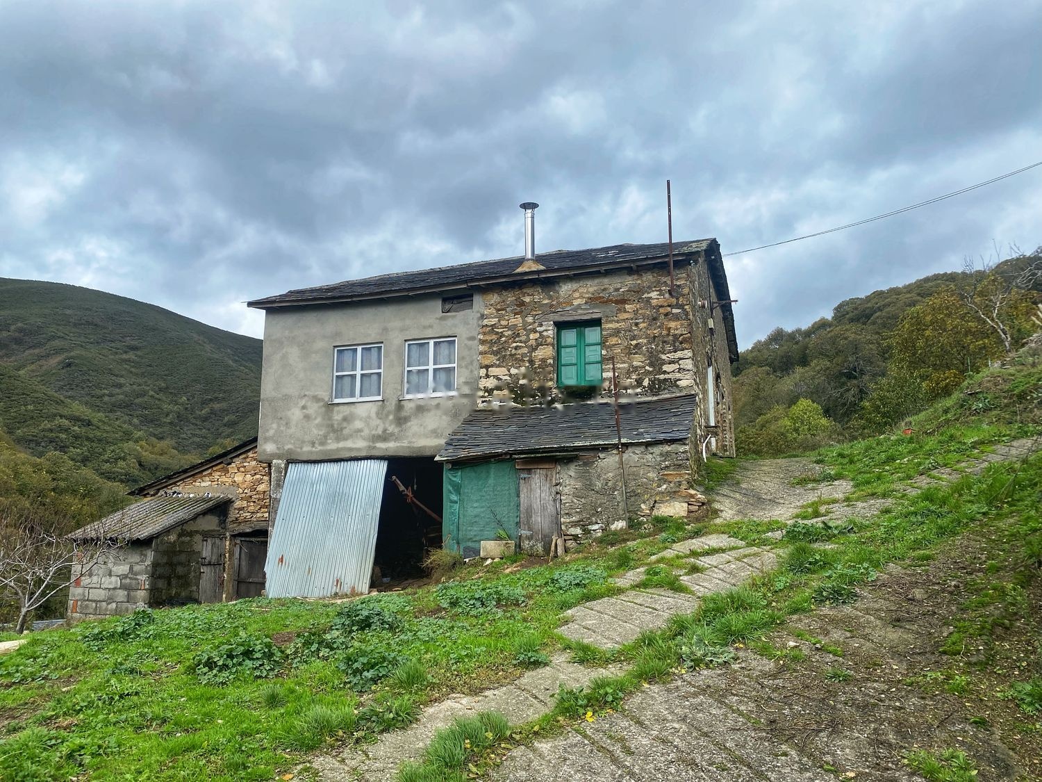 Casa de piedra en el pueblo de Ransinde (Vega de Valcarce) con terreno alrededor.