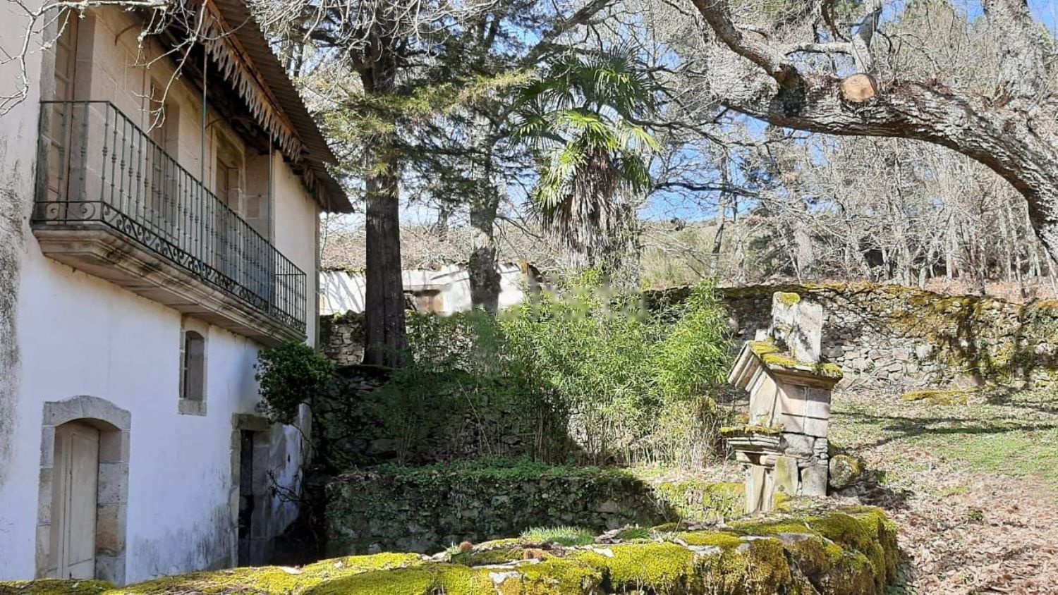 Finca de unos 5000m2 acotada con pared de piedra con huerta y pradería, la huerta está dispuesta en cuatro bancales. Dispone de manantial de agua potable. Asimismo tiene un manantial de aguas sulfurosas. Esto último permitió la existencia de un pequeño Balneario que estuvo activo desde finales del S. XIX hasta mediados de los años 50 del S XX; y de reconocida fama para enfermedades de la piel.