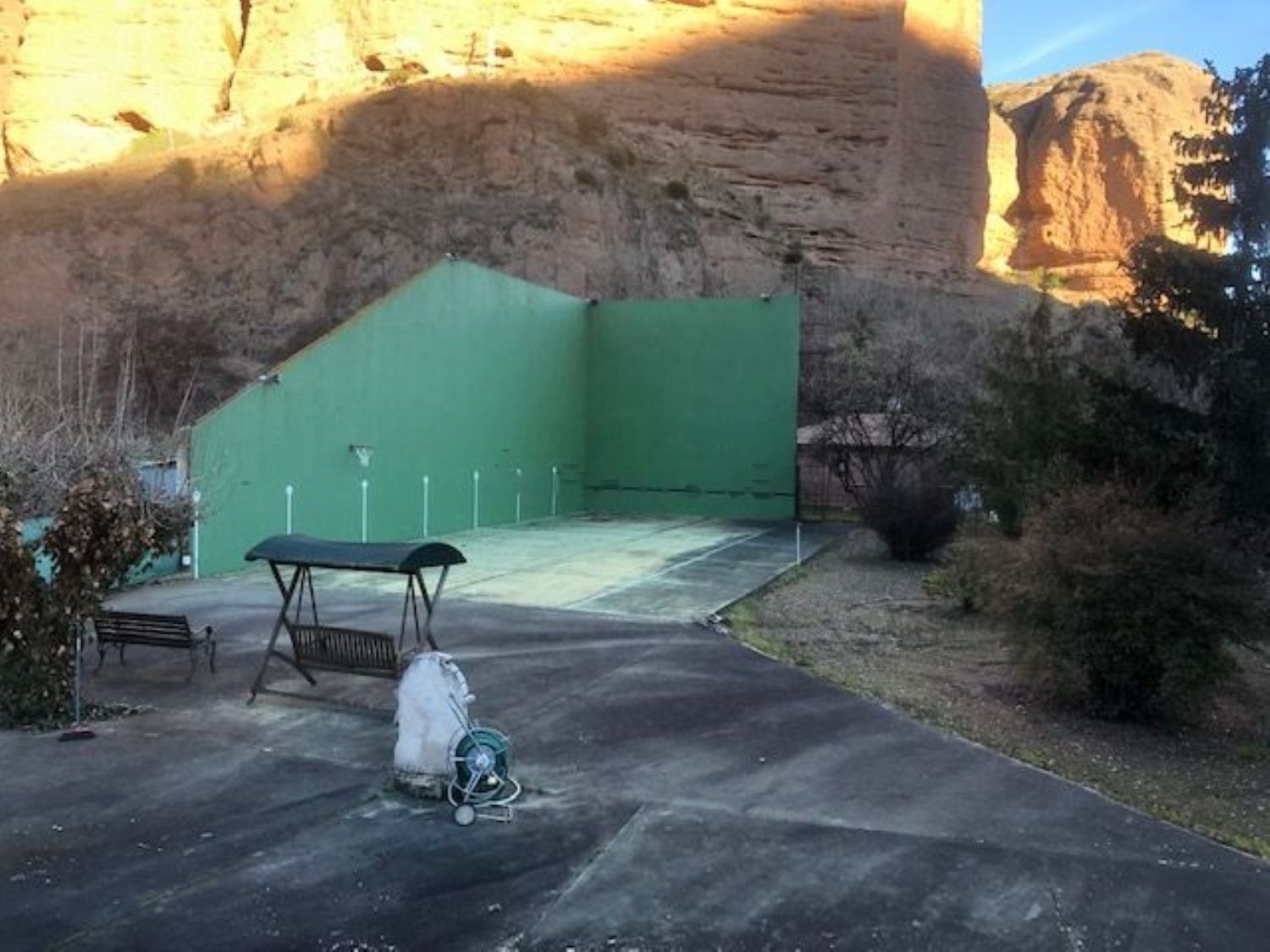 En terreno gran frontón, asador, cuartos de aperos, arboles frutales, zona de huerta.