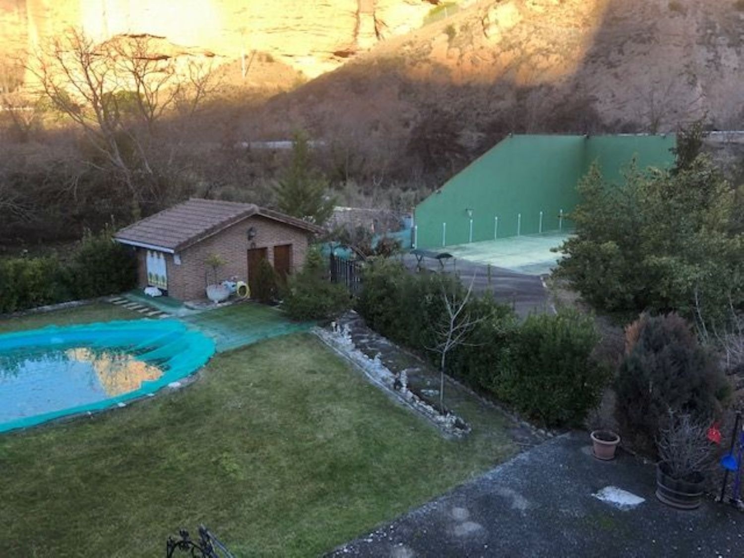 Piscina independiente en jardín con cuarto para depuradora y vestuarios