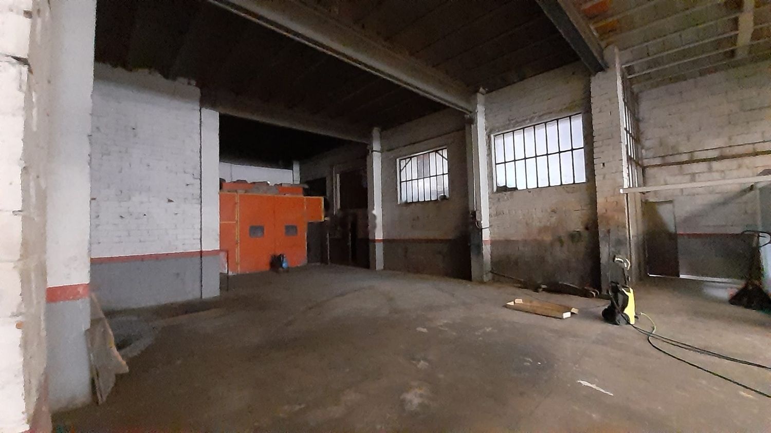 Planta baja: Nave con una entrada de 4,5 m de altura y anchura, con un despacho elevado. La nave dispone de luz, ventilación natural y forzada y baño pequeño. No tiene salida trasera para mayor seguridad de las mercancías. Dispone de pozo de inspección para automóviles.