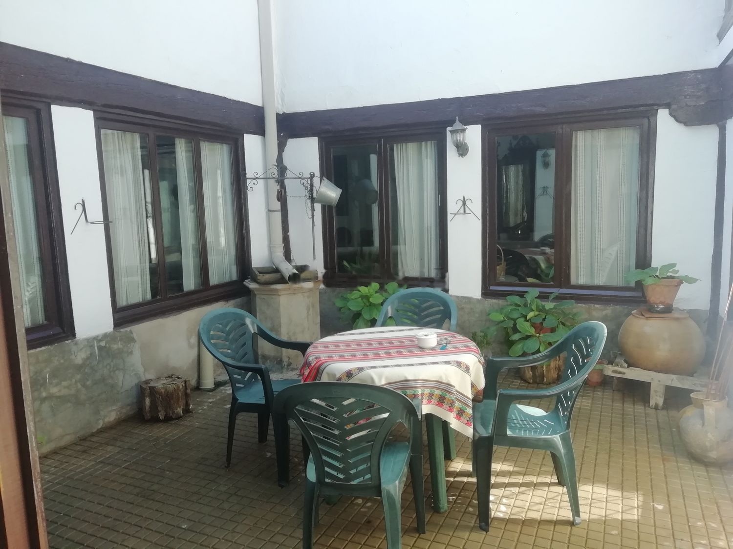 Casa rústica, patio, corral, dos cuevas y porches cerrados.