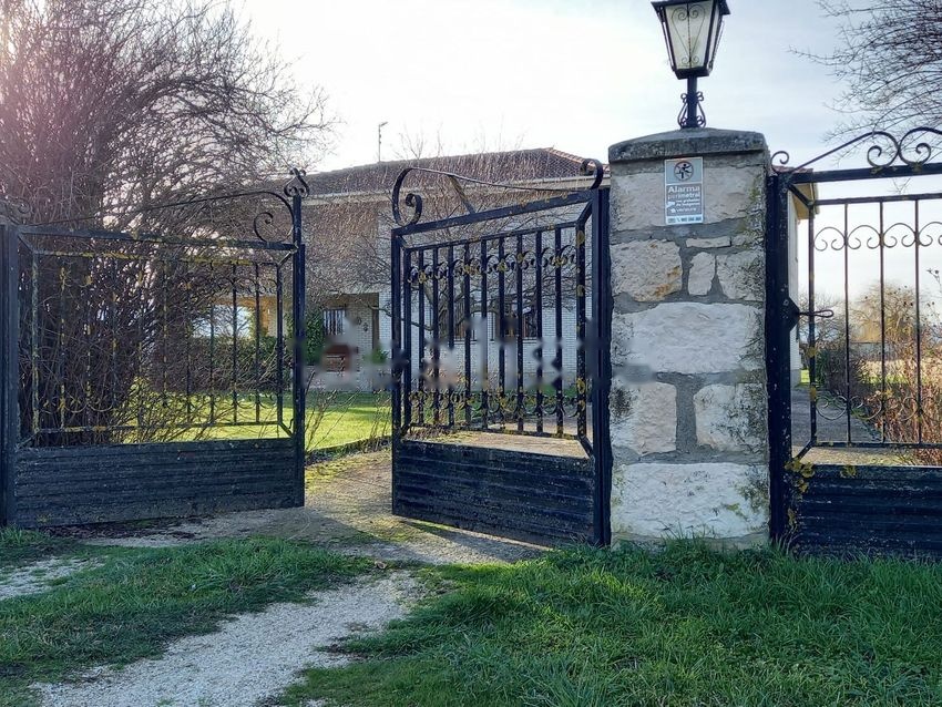 La finca se encuentra perimetralmente cerrada, siendo la parte delantera de la finca de piedra de sillería y forja.