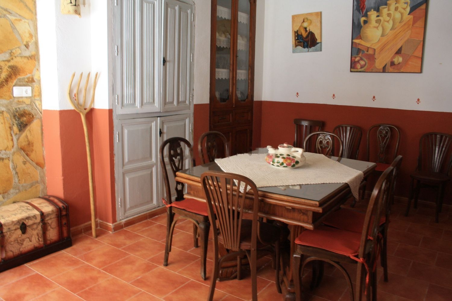 Consta de 4 dormitorios con toma de TV, salón comedor con chimenea, más otros dos salones, dos baños completos, galería con lavadero y puerta de servicio, cocina, patio con paellero y barbacoa, fuente en el patio, leñero y granero, cuadra antigua, gran buhardilla diáfana con mucha luz y vistas con ventanas a la calle y patio. Casa muy luminosa y con muchas posibilidades. La vivienda queda amueblada.