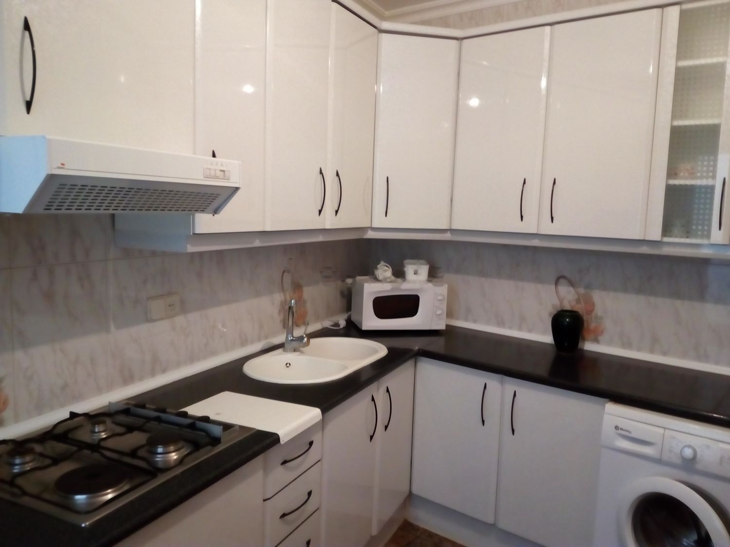 La primera vivienda tiene 100 m2. Consta de: 2 habitaciones, amplio salón-comedor muy luminoso, cocina equipada con nevera, microondas y lavadora. Un baño. Cuenta también con despensa y patio de luces.