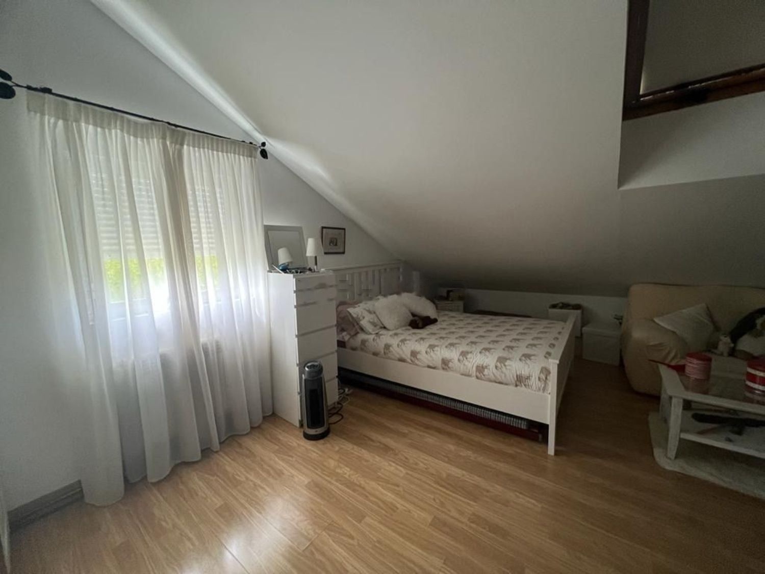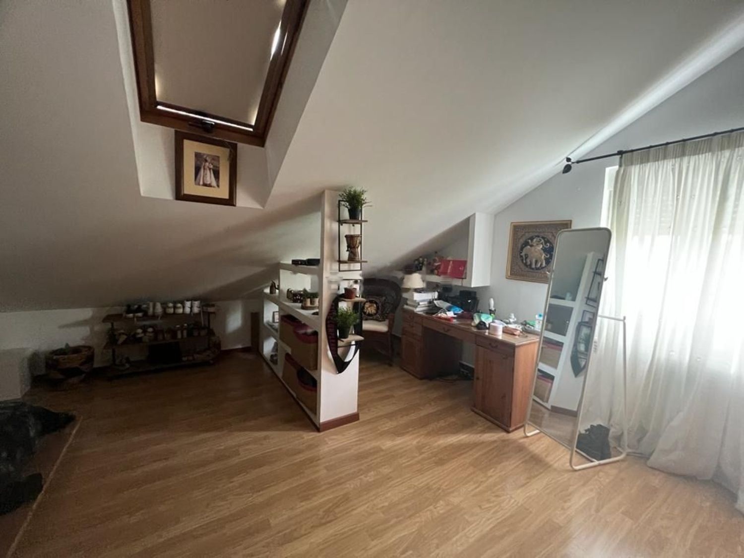 En la planta baja recibidor, cocina independiente, salón comedor y baño de cortesía. En la primera planta con tres habitaciones amplias y luminosas y dos baños, en la buhardilla dos habitaciones muy amplias y luminosas que podrían tener multiples funciones. Ideales para teletrabajo. En el sotano encontramos el garaje, la zona de lavandería y almacenaje y un amplio txoko.