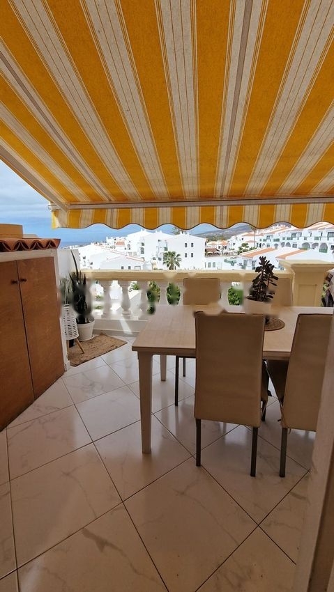 Se vende apartamento con espectaculares vistas al mar y Gomera. Completamente reformado, amueblado y equipado. Cocina americana con electrodomésticos, baño con ventana y plato de ducha doble, dormitorio con armario empotrado, cortina exterior y terraza de 15m2. Dos piscinas, una de ellas climatizada. Vigilancia nocturna. Playa a 2 km, todos los servicios a menos de 1 km.
