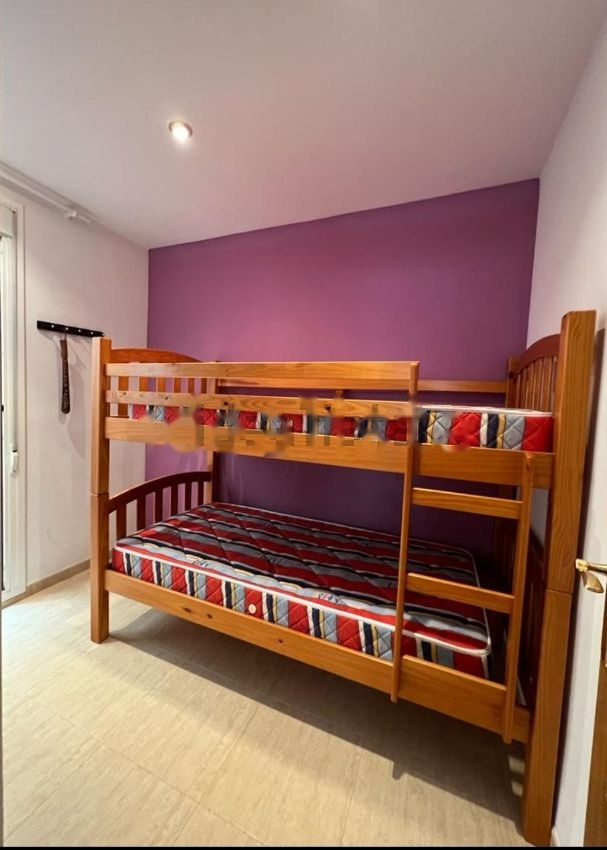 Bonito piso/apartamento a tres minutos andando del mar. Y con vistas a la montaña desde el comedor y el patio. Dispone de una pequeña cala de piedra para tomar el sol y darse un baño en el mar, así como una zona ajardinada comunitaria con una gran piscina y algunos columpios para los más pequeños. Se puede acceder al interior desde el patio que da a la calle como desde el portal del edificio que se encuentra en la parte de la zona ajardinada. A destacar que el inmueble dispone de calentador de agua y aire acondicionado, rejas de protección en ventanas y puertas, comedor con cocina abierta, dos habitaciones (una doble y otra individual, lavabo con plato de ducha y bidé, cuartillo para la lavadora, un pequeño patio interior y un patio exterior de 20 m2.