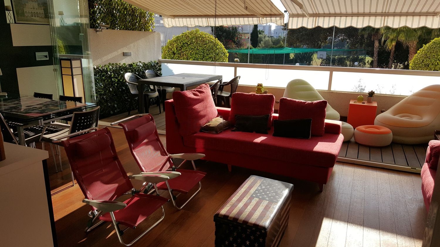 - pavimento de madera natural de jatoba en terraza interior acristalada