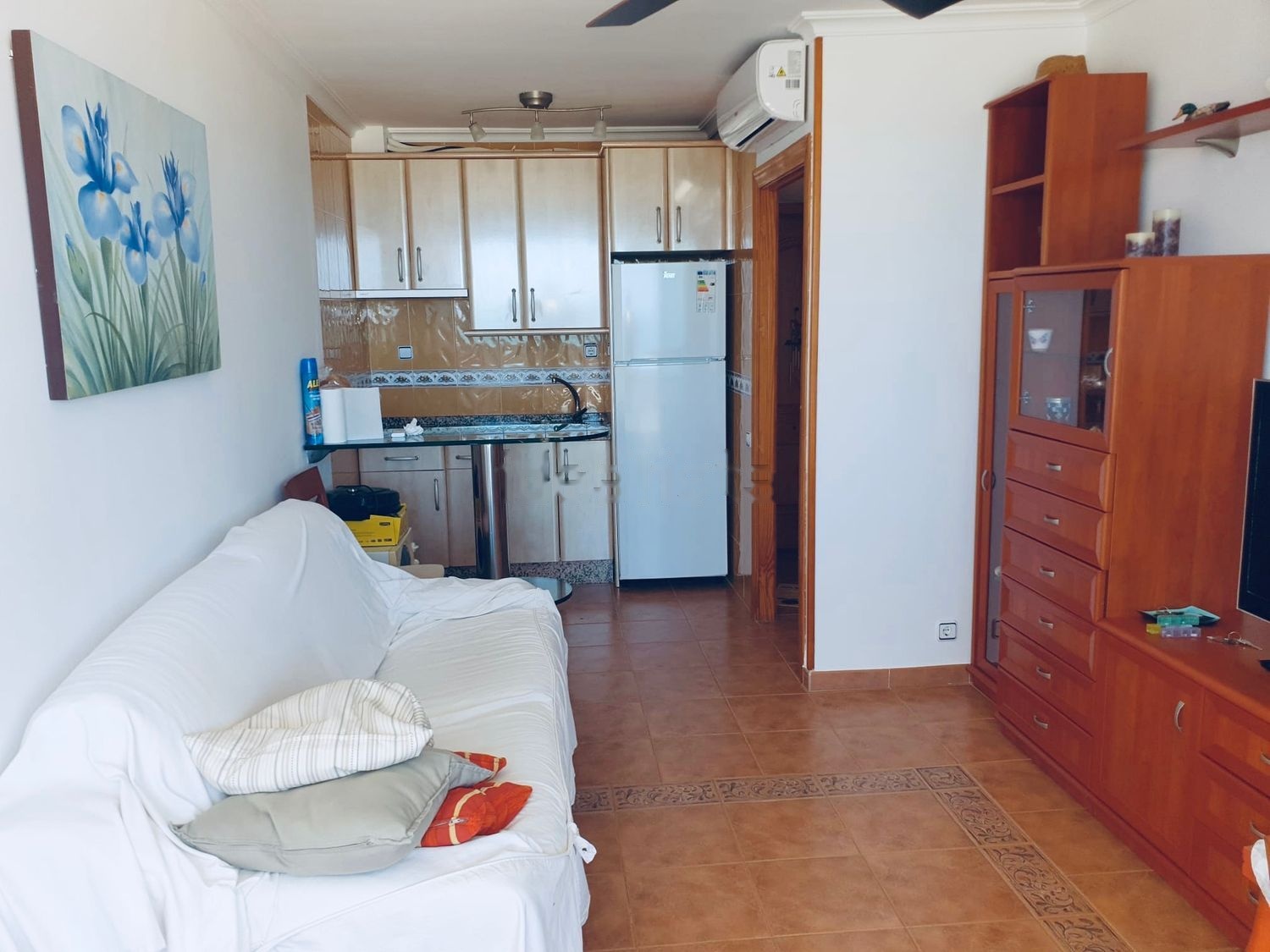 Piso en Matalascañas, en primera linea de playa, con vistas al mar. En perfecto estado, para entrar. Accesible para personas con movilidad reducida. Con ascensores. Tiene 38 m2 distribuidos en recibidor, salon-cocina, 1 dormitorio grande, 1 baño y terraza. Armarios empotrados. Ventanas nuevas y persianas automáticas nuevas. Aire Acondicionado. Piscina comunitaria. Se accede desde el paseo maritimo y desde el hotel Flamero.