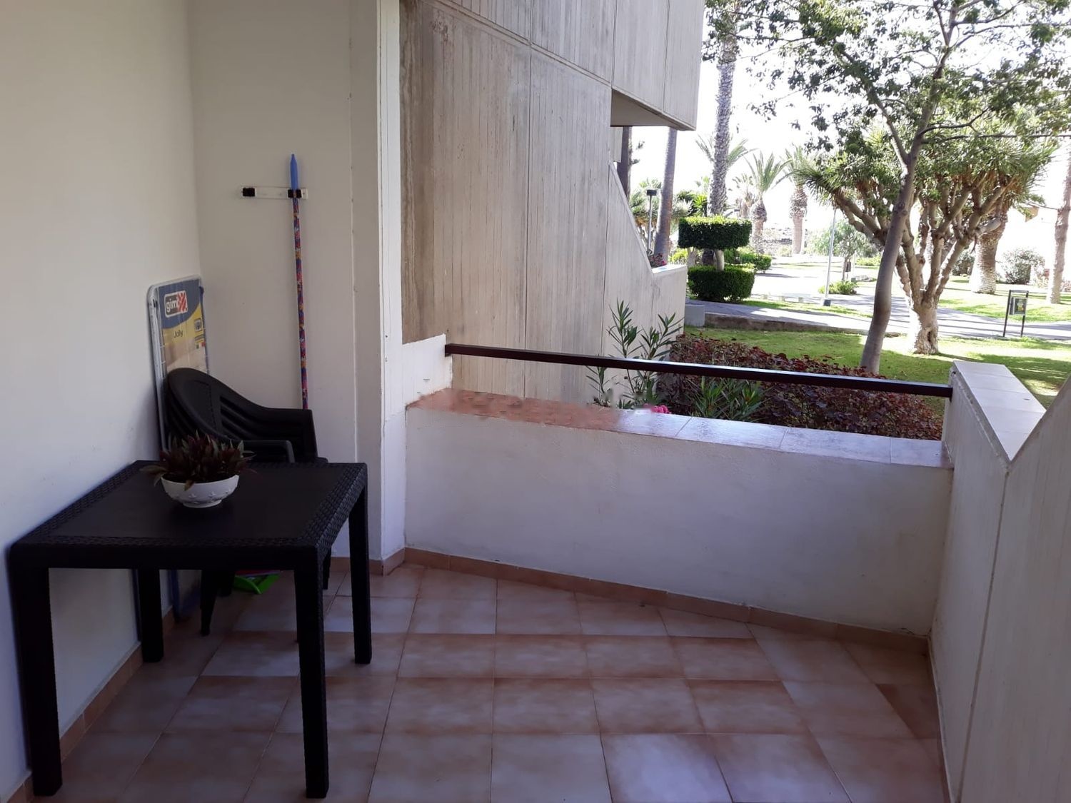 PARTICULAR. - Amueblado. - Se vende amueblado según se ve en las fotos. Puerta corredera a la terraza de aluminio y cristal de climalit con mosquitera, persiana de aluminio. Salón con sofá cama, mueble-vitrina, TV. y ventilador. En habitación ventana oscilobatiente de aluminio y cristal climalit con mosquitera y persiana de aluminio, tiene 2 camas individuales de 1,05 cm. Baño con plato de ducha y lavadora, cocina totalmente amueblada con electrodomésticos. Se vende con muebles, electrodomésticos, ropa de cama y menaje de cocina. Puerta de entrada al apartamento de aluminio. Rejas de aluminio