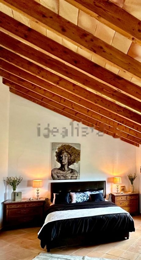 Los techos altísimos y las vigas de madera vistas transmiten esa sensación acogedora, que se ve acentuada por la chimenea, los suelos de terracota de alta calidad en colores coordinados, las ventanas de aluminio oscilobatientes con doble acristalamiento y el aire acondicionado frío/calor.