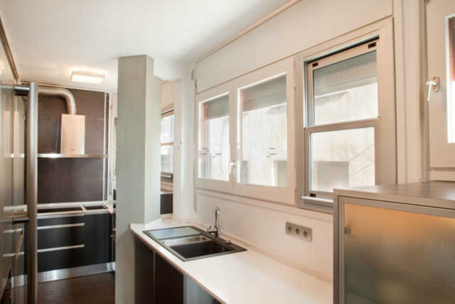 todas las luces son de weber&ducre, la pared del comedor de travertino sin pulir, calefaccion central con calder ade agua caliente, aire acondicionado, nevera americana.