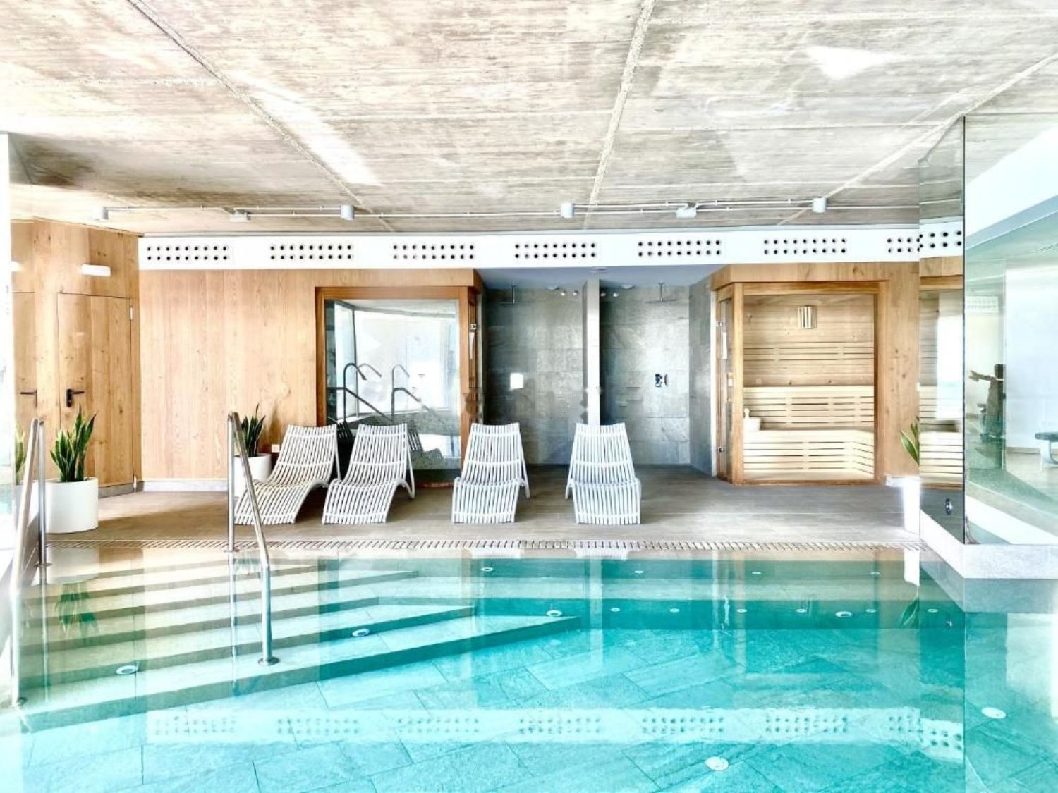 El complejo está seguro con dos piscinas, zona de bienestar con gimnasio, piscina cubierta climatizada, sauna, baño turco.