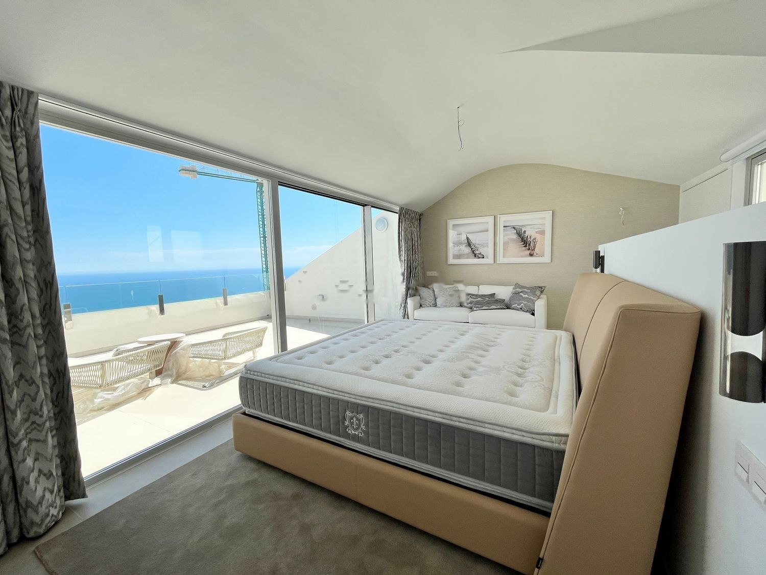En la planta superior, se encuentra la impresionante suite principal, que cuenta con una amplia terraza privada y unas vistas panorámicas aún más impresionantes. Disfruta de amaneceres y atardeceres inolvidables mientras descansas en la comodidad de tu cama. Las dos habitaciones adicionales, también con acceso a la terraza principal, ofrecen amplios espacios para la familia o invitados.