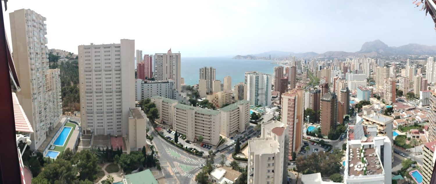 Se vende apartamento en Benidorm en playa Levante zona Rincón de Loix, planta 20 maravillosas vistas al mar, montaña y ciudad. Vivienda de 1 dormitorio con posibilidad de tener 2, baño equipado con bañera, salón con aire acondicionado y cocina totalmente equipada con pequeña galería y su amplio balcón acristalado con vistas maravillosas. El edificio se encuentra 5 minutos a pie de la playa, cerca de todo tipo de servicios a pie, supermercados, restaurantes, ocio, consultorio salud, servicios de transporte... Tiene 2 piscinas y amplias zonas verdes con hamacas, baños y zona de aparcamiento para bicicletas con vigilancia. Opción de plaza de garaje no incluido en el precio.