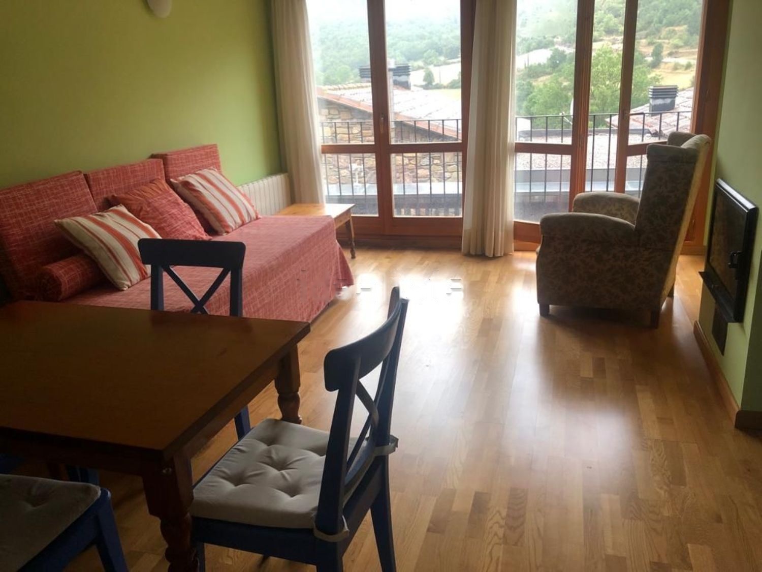Entorno muy natural, estupendas vistas, entorno perfecto, tranquilo y relajante, en pirineo aragonés muy cerca de la Vall d'Aran. También con opción de compra de una o dos magnificas cocheras cerradas individuales aprox. 23 m2. cada una en el mismo edificio. Ideal tanto en verano como invierno.