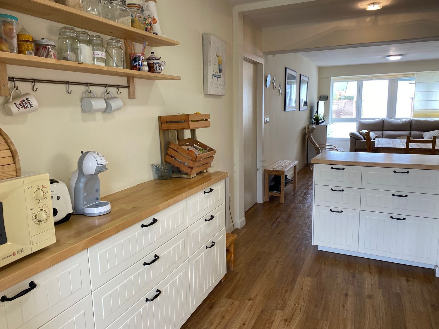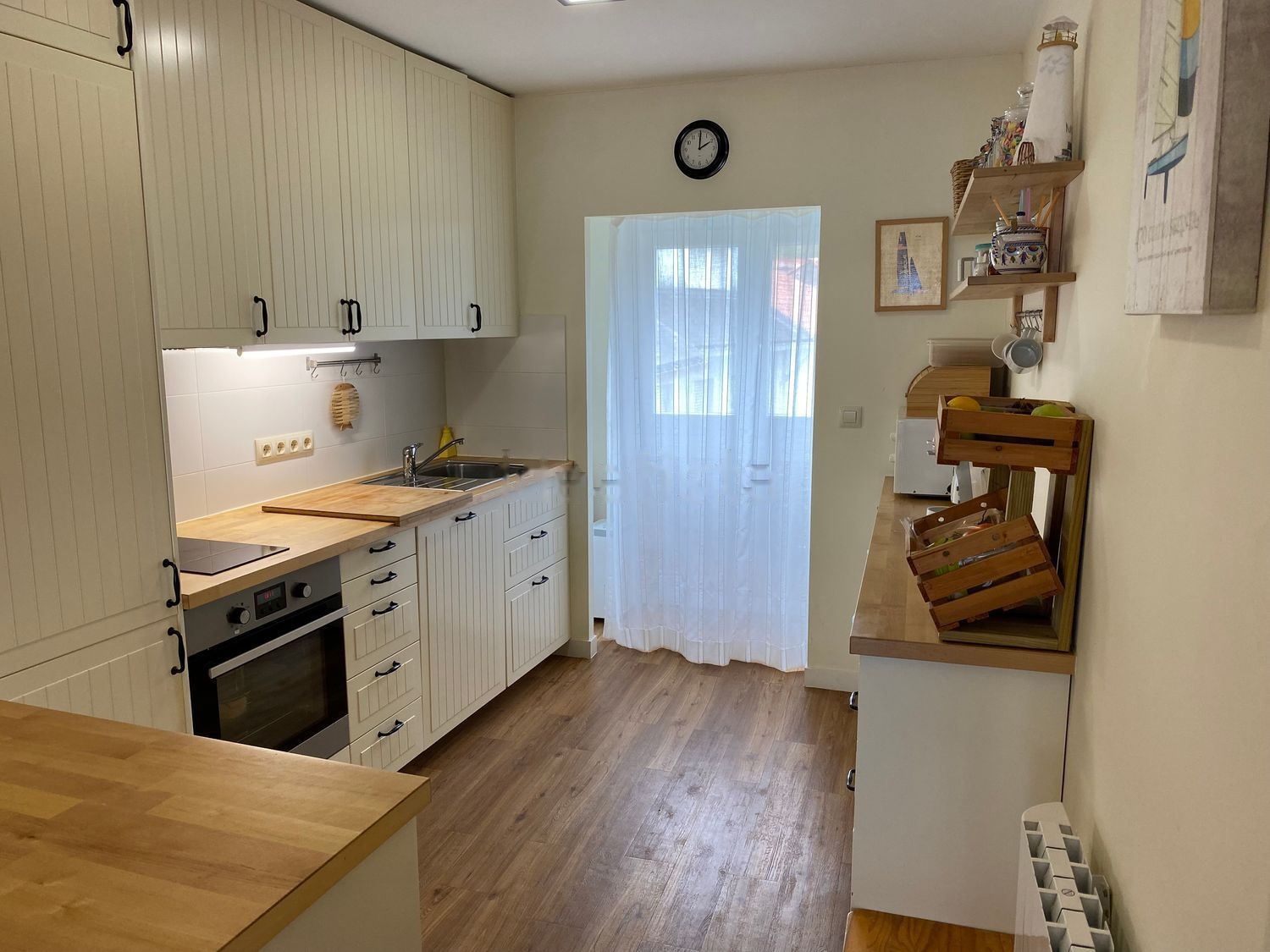 Piso en Cabañas en primera línea de playa. El piso tiene dos dormitorios, uno de matrimonio con baño incluido y otro muy amplio, también con baño incluido, en el que caben hasta 3 camas individuales o literas. El salón y la cocina están integrados. La cocina está totalmente equipada (con lavaplatos y nevera paneladas). Junto a la cocina hay una despensa donde hay zona de almacenaje, zona de tender y la lavadora. El piso ha sido reformado hace 5 años, tienen toda la conducción eléctrica y de agua nueva, y todas las ventanas son nuevas de PVC. El suelo de la casa es todo idéntico de roble laminado. El piso se vende junto con una plaza de garaje individual en el mismo edificio de 18 mts que cuenta con agua y luz.
