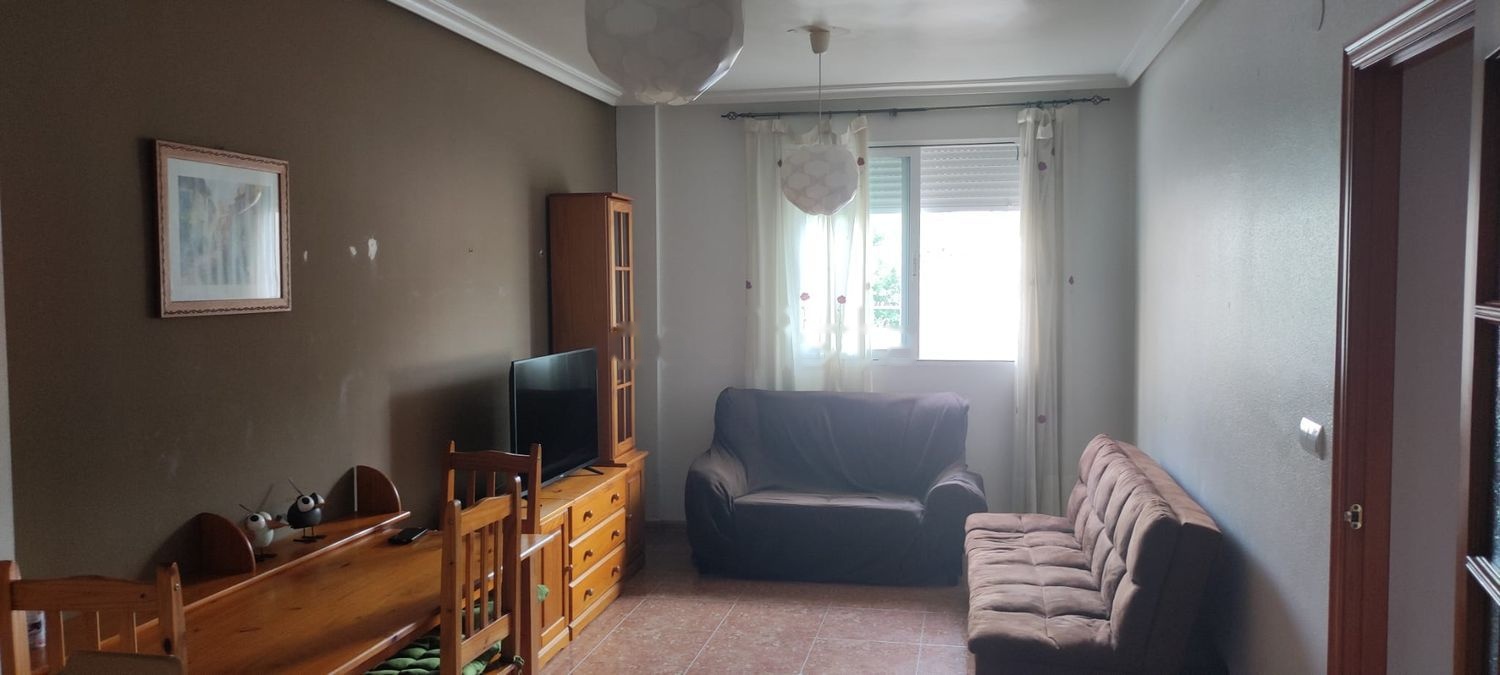 Piso en muy buenas condiciones, el edificio esta construido en el 2003 muy pocos años el piso consta desde la entrada de a mano izquierda de baño con bañera bidé Wc. a su derecha en frente dormitorio muy amplio de matrimonio con armario y cama de matrimonio cabe otra cama mas o sofá cama ventana a la calle zona principal de vida cocina con barra americana electrodomésticos y muebles de cocina con nevera, lavadora, horno, vitro y microondas muebles de salón como mesa de comedor amplia, mueble de televisión y sofá.