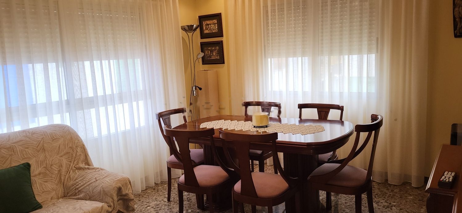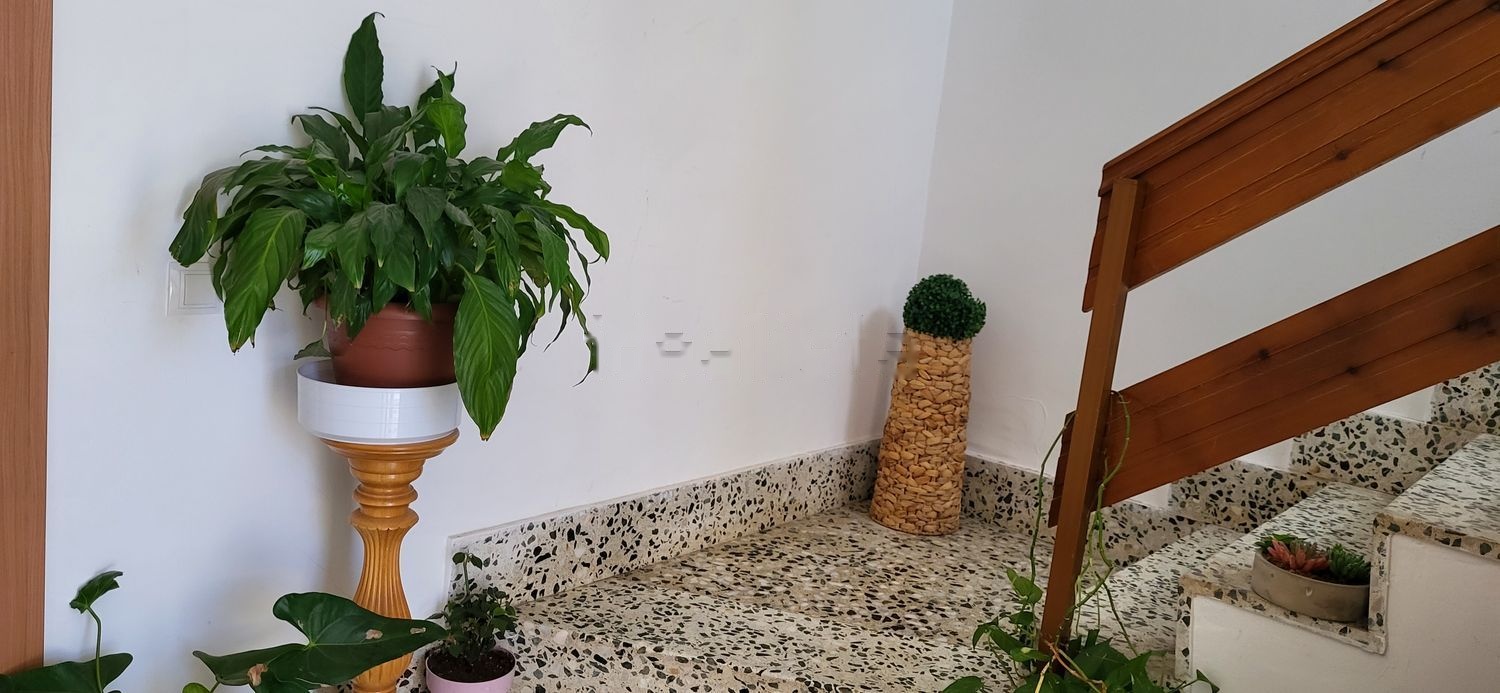 Primer piso muy soleado. Consta de 3 habitaciones con armarios empotrados, 2 baños con duchas, gran cocina con balcón y con despensa independiente. Arriba hay una terraza con un cuarto con chimenea y lavadero.