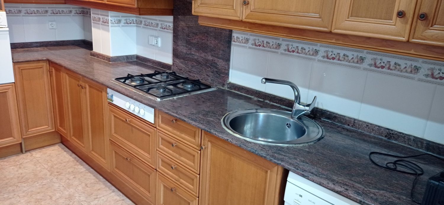 El suelo es de gres, no es de parqué. El piso no tiene calefacción de radiadores, però si tiene bomba de calor en el piso de abajo, lo que supone calor para el invierno y frio para el verano. La cocina funciona con bombona de gas.