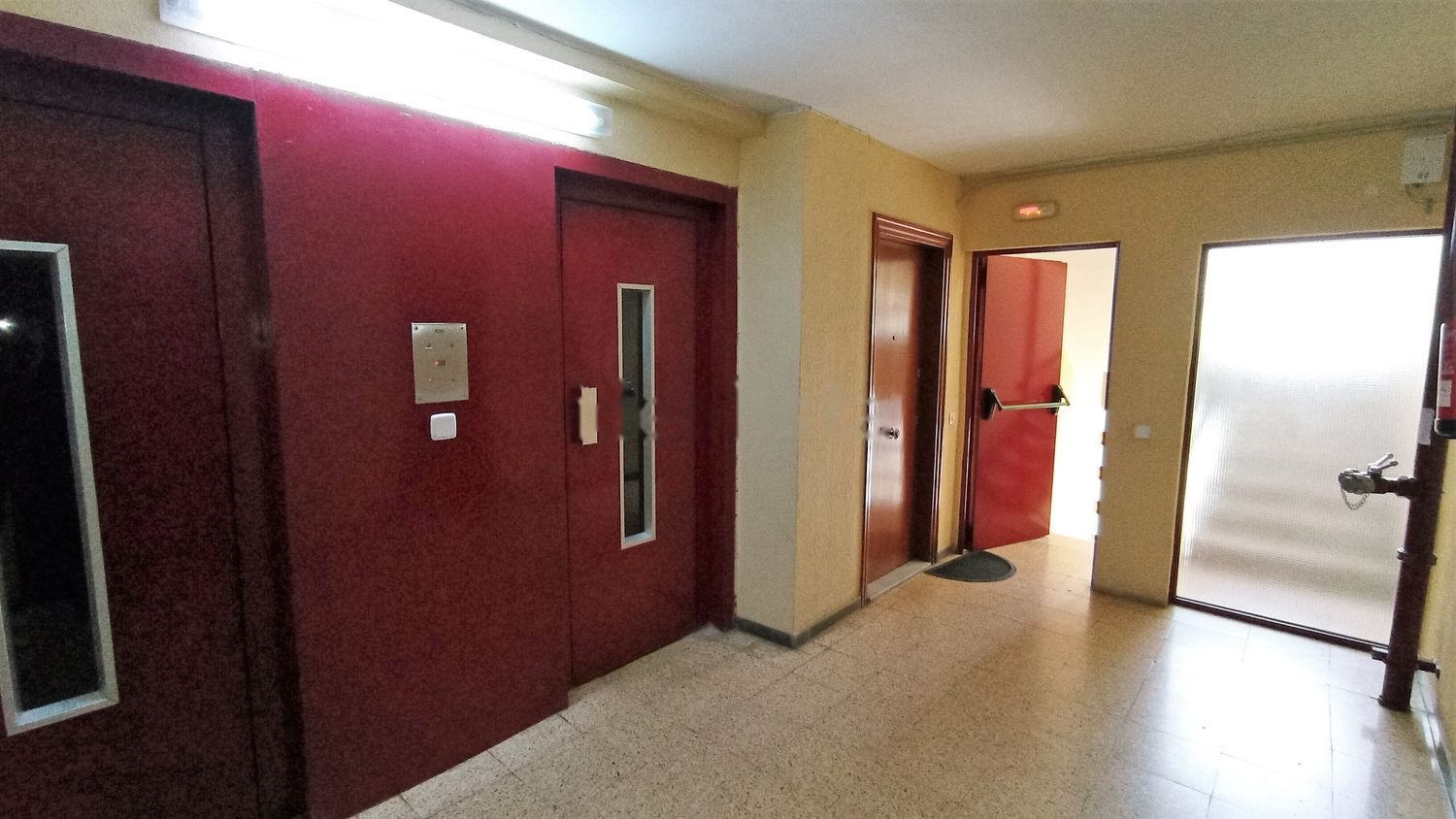 Rellano aislado con cortafuego y 2 ascensores.
