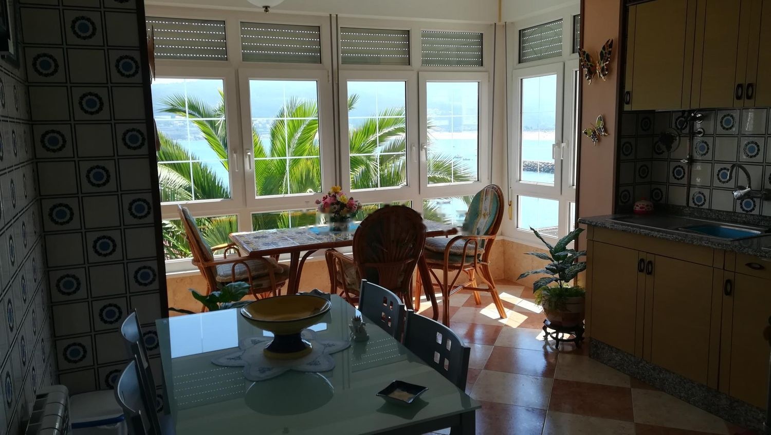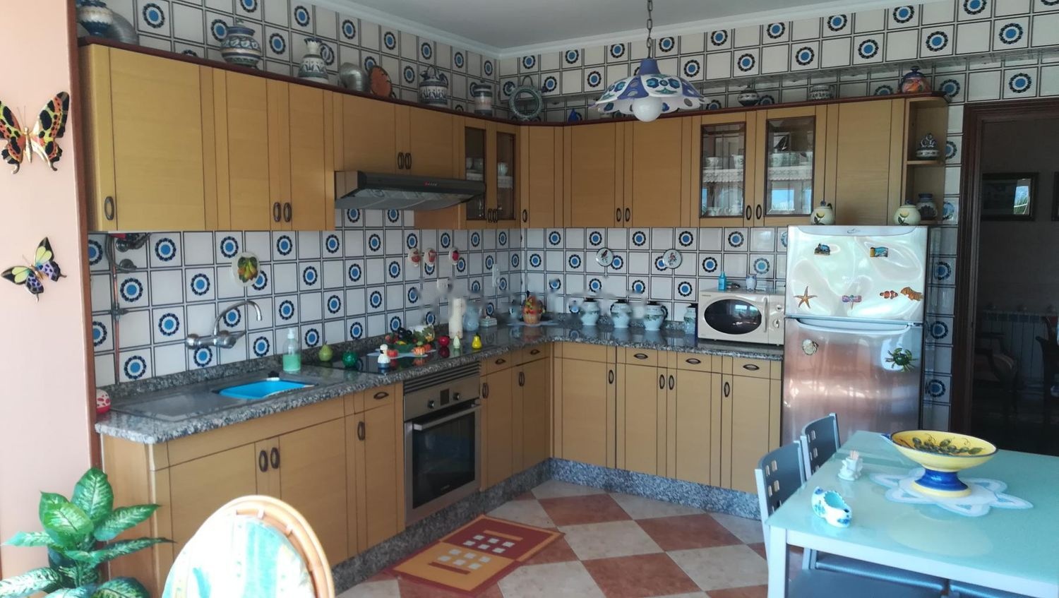 Vivienda situada probablemente en una de las zonas más privilegiadas de la localidad, justo encima del puerto, en la primera línea de costa. Por ello, posee unas impresionantes vistas a la ría, al puerto y a la playa de Laxe, mientras que por la fachada posterior posee unos jardines de uso comunitario y da acceso a la calle principal. Se trata de una vivienda a la cual se accede por un amplio hall distribuidor de estilo inglés con un armario empotrado y que da acceso a todas las estancias de la casa, empezando por una cocina totalmente amueblada y equipada y abierta a una gran galería (que es la joya de la casa) y desde la cual podemos disfrutar probablemente de una de las mejores vistas de la Costa da Morte. Anexo a la galería está un enorme salón comedor amueblado en un estilo clásico. El primer dormitorio está formado por una cama de 1,35 con 2 mesitas, cómoda, un enorme armario de 5 puertas, 3 de ellas con espejo, suelo de parquet. El segundo dormitorio también está formado por una cama de 1,35 con 2 mesitas, cómoda, un enorme armario de 5 puertas, 1 de ellas con espejo, suelo de parquet y además da acceso a un balcón exterior. El tercer dormitorio consta de cama de 1,20 con mesitas, cómoda y armario tipo puente. El baño principal está formado por un enorme plato de ducha y mampara, lavabo con mueble y espejo, inodoro y bidet, mientras que el segundo baño es un aseo con lavabo con mueble y espejo e inodoro. Todas las estancias de la casa son exteriores, incluidos los baños. Tiene ventanas de PVC con cristal climalit, puerta blindada, calefacción eléctrica, dos trasteros anexos a la vivienda y jardines comunitarios. La vivienda se encuentra en un chalet de 4 plantas con escaleras exteriores, por lo que el acceso a cada planta es totalmente independiente.