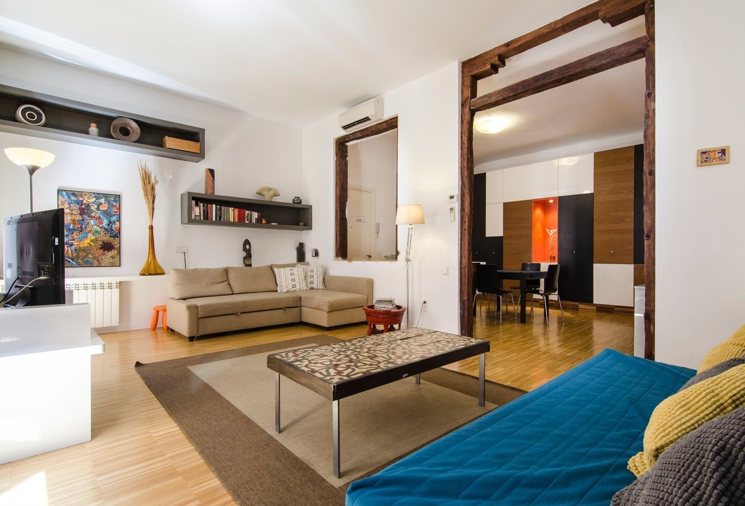 Apartamento de estilo moderno, totalmente amueblado y equipado junto a la Puerta del Sol. Dispone de 142m útiles. El edificio cuenta con portero automático y ascensor. La vivienda tiene una magnifica distribución, accediendo desde la entrada a un espacio diáfano donde encontramos una cocina americana de gran tamaño, completamente equipada junto al salón comedor que da acceso a tres balcones con orientación Sur, lo que permite que la vivienda tenga una buena iluminación. El dormitorio principal de gran tamaño cuenta con un baño en suite con un gran jacuzzi y un plato de ducha independiente. La segunda habitación también de buenas dimensiones y baño independiente. El inmueble cuenta con un aseo adicional, de gran tamaño que nos hace de lavadero encontrándose ubicada la lavadora y secadora y mueble escobero. La calefacción está instalada con un sistema caldera individual, mientras que el aire acondicionado funciona por splits. El apartamento se ubica justo detrás de la Puerta del Sol estando su estación de metro a dos minutos caminando. Apartamento idílico para aquellos que desean vivir en pleno centro rodeado de restaurantes, tiendas y de los sitios más celebres de la ciudad.