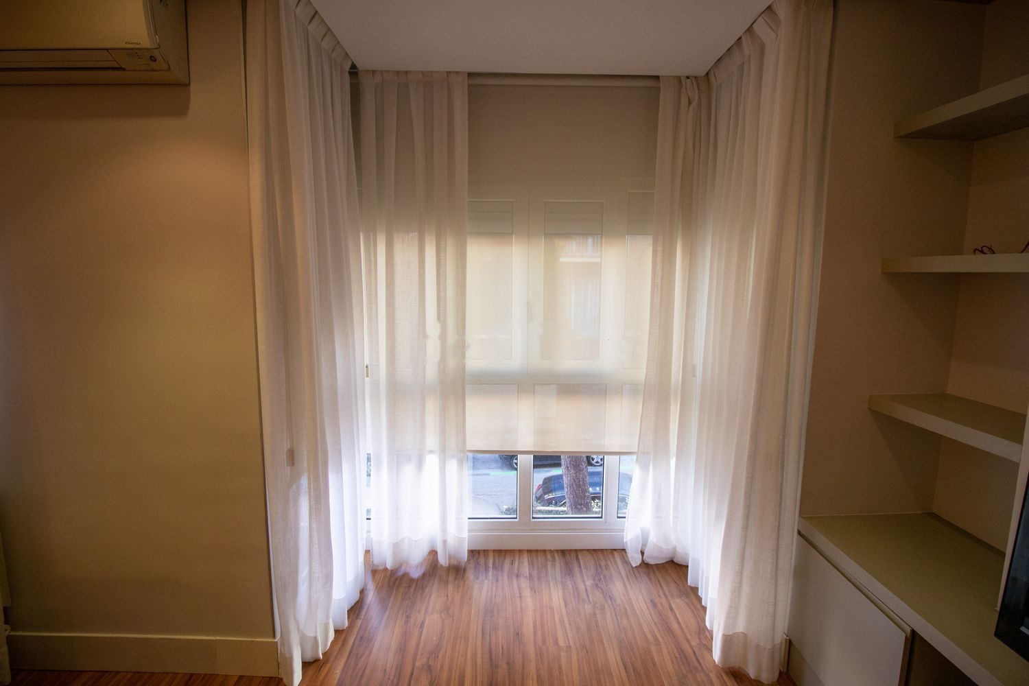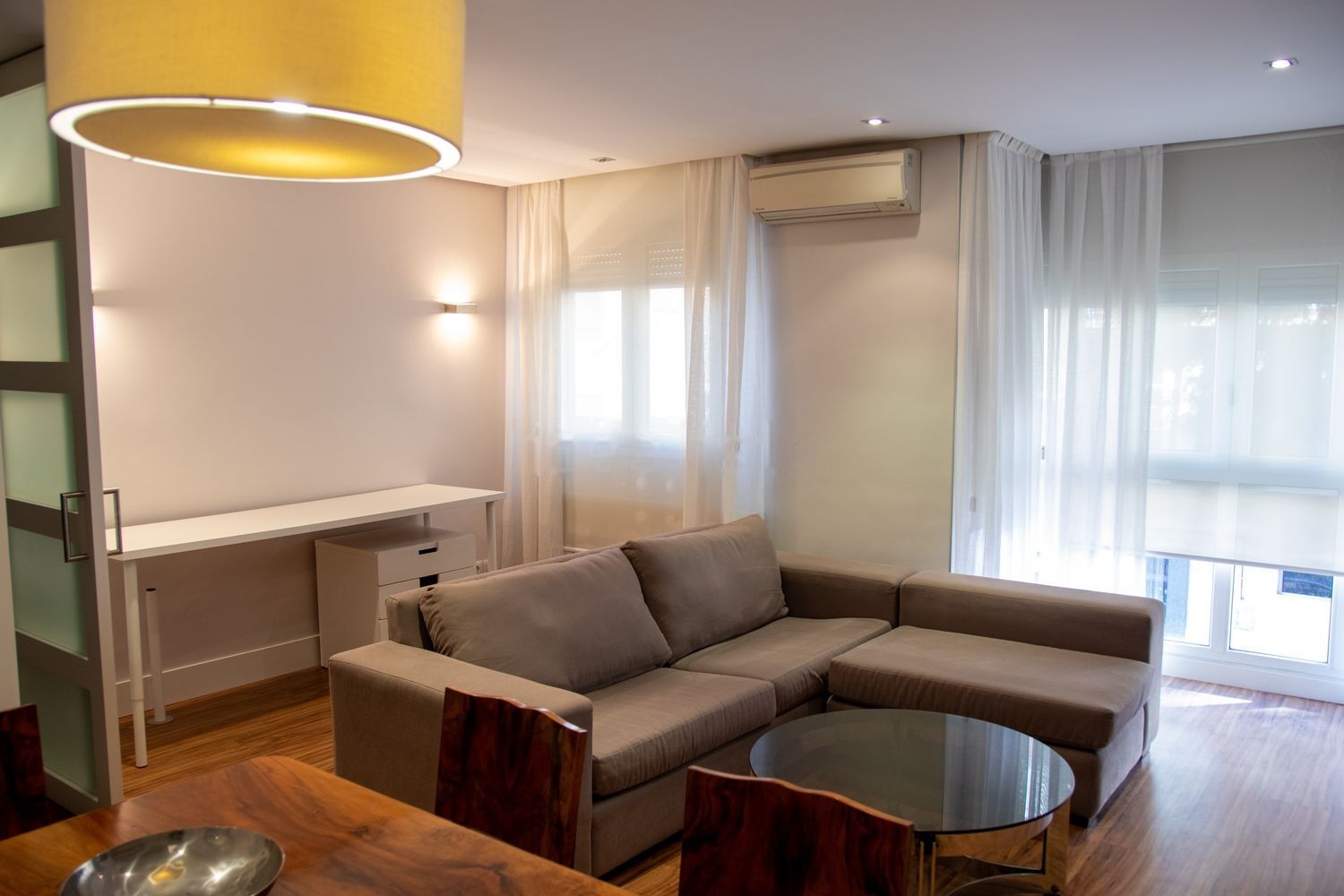 Inicialmente la vivienda constaba de cuatro habitaciones, pero fue completamente reformada suprimiendo dos habitaciones para dar mayor amplitud al resto de estancias y maximizar el espacio. Se dotó a la vivienda de pintura lisa, carpintería a medida, suelo laminado de alta resistencia, techos de escayola con cortineros e iluminación incorporada, alicatados de mármol en cuartos de baño y azulejos rectificados en cocina y tendedero, electricidad con numerosos puntos, estores y cortinas en todas las estancias, ventanas con puente térmico oscilobatientes, aire acondicionado y calefacción individual y radiadores, sanitarios, grifería y electrodomésticos de primeras marcas.