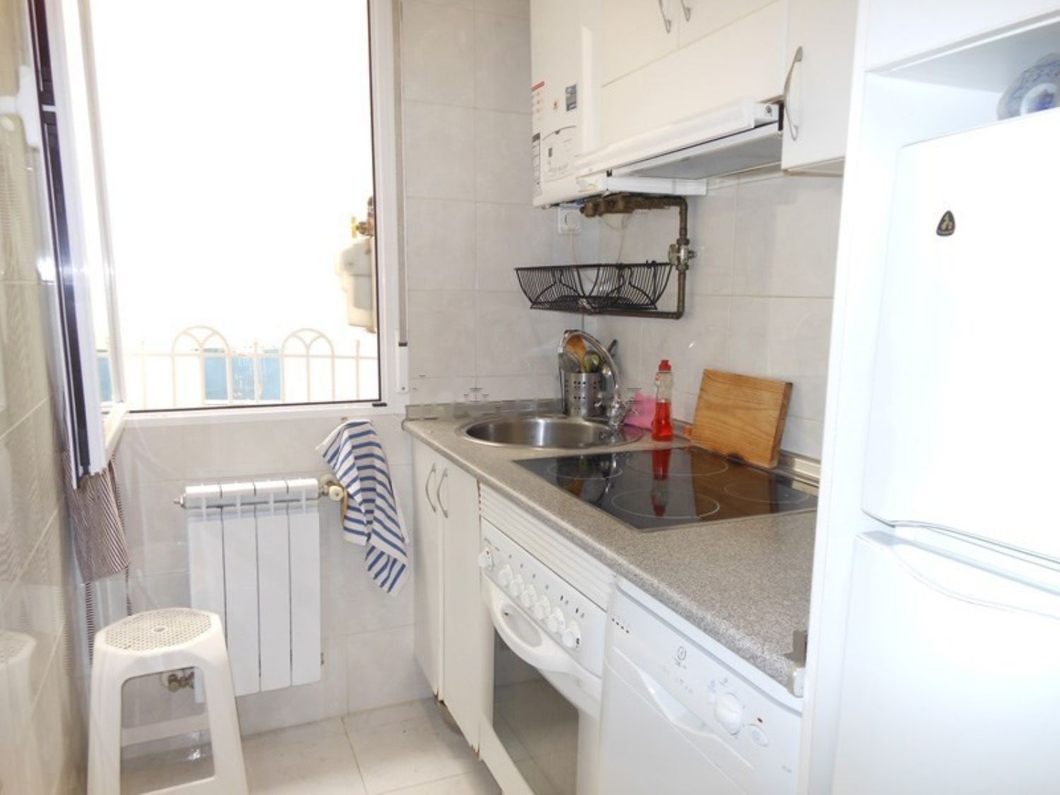 Otras calidades: Completamente a mueblado. Tarima flotante laminada, puerta blindada a estrenar, pintura lisa, plástica y lavable en color crema. Techos de 2, 60 metros. Todo el cerramiento de aluminio lacado en blanco con doble acristalamiento climalit, rotura de puente térmico y persianas. Calefacción y agua caliente individual de Gas Natural con 4 radiadores.