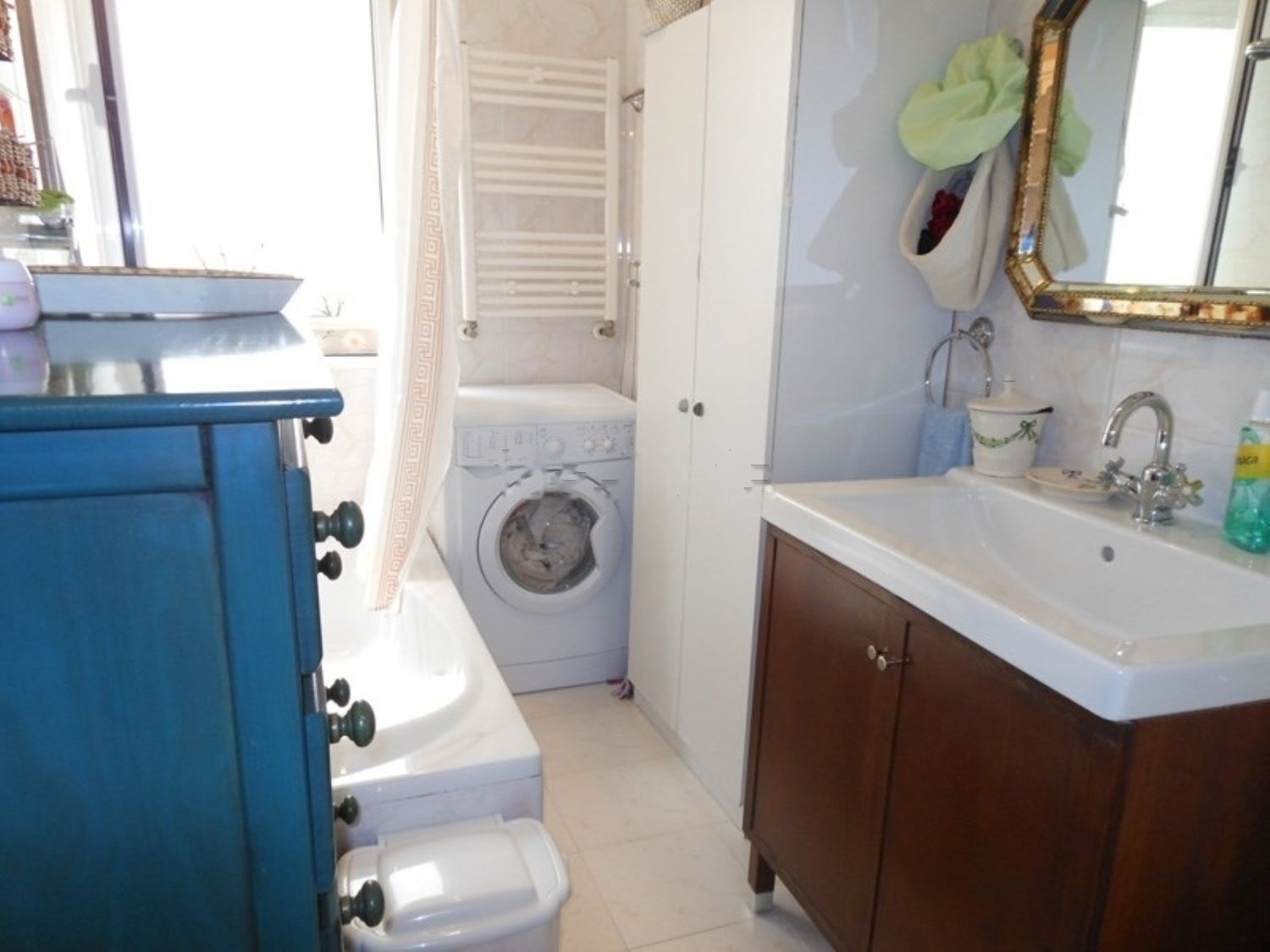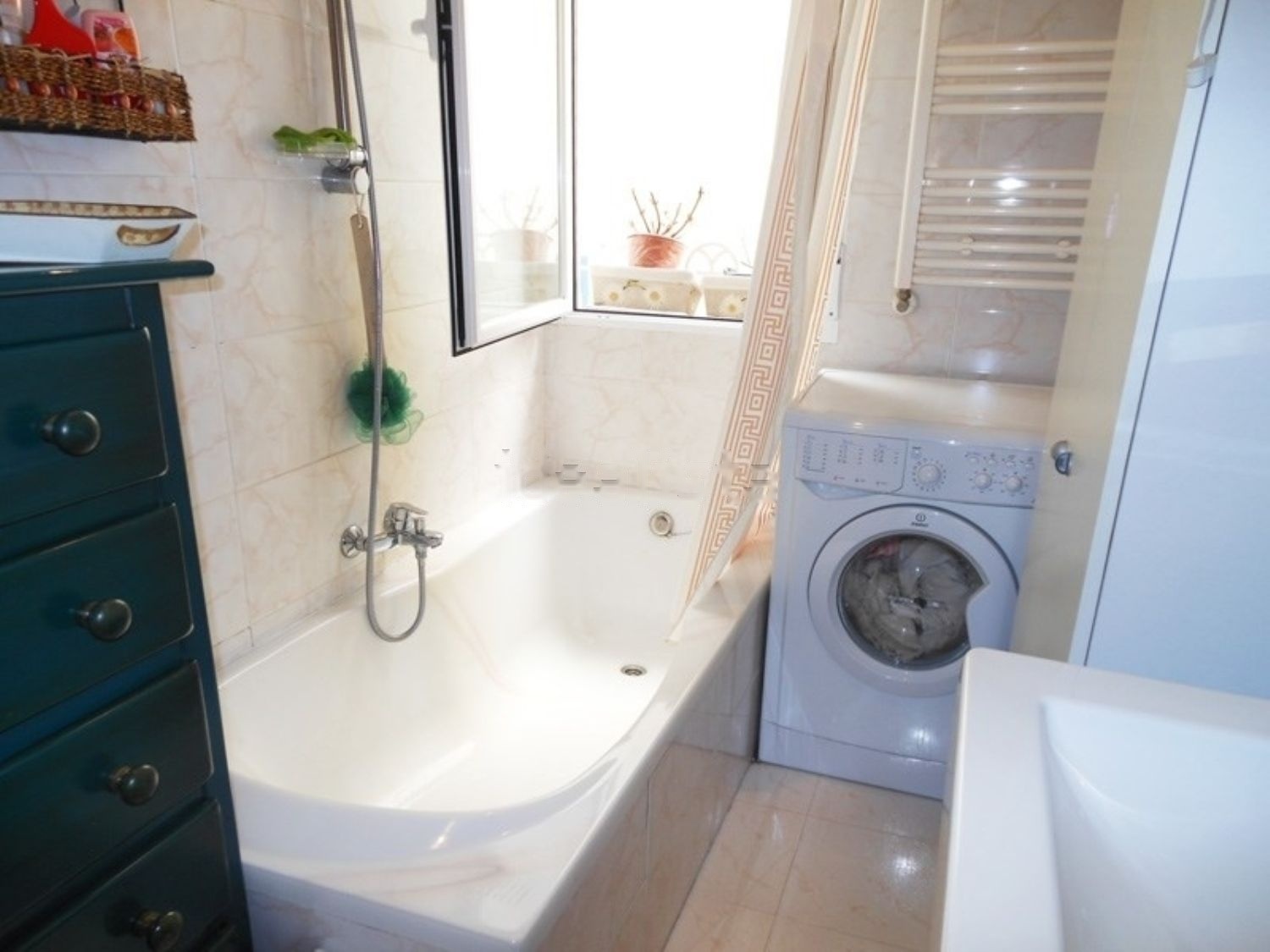 Baño: Amplio baño independiente de aprox. 7 metros cuadrados. Lavabo grande con armario de gran capacidad. Bañera acrílica de 1. 80 x 0. 80 mts. Sanitarios y grifería Roca. Toallero-radiador. Armario multiusos. Halógenos empotrados. Gran ventanal 1. 20 x 0, 80 mts. Lavadora 5kg. Puerta de madera lacada en blanco.