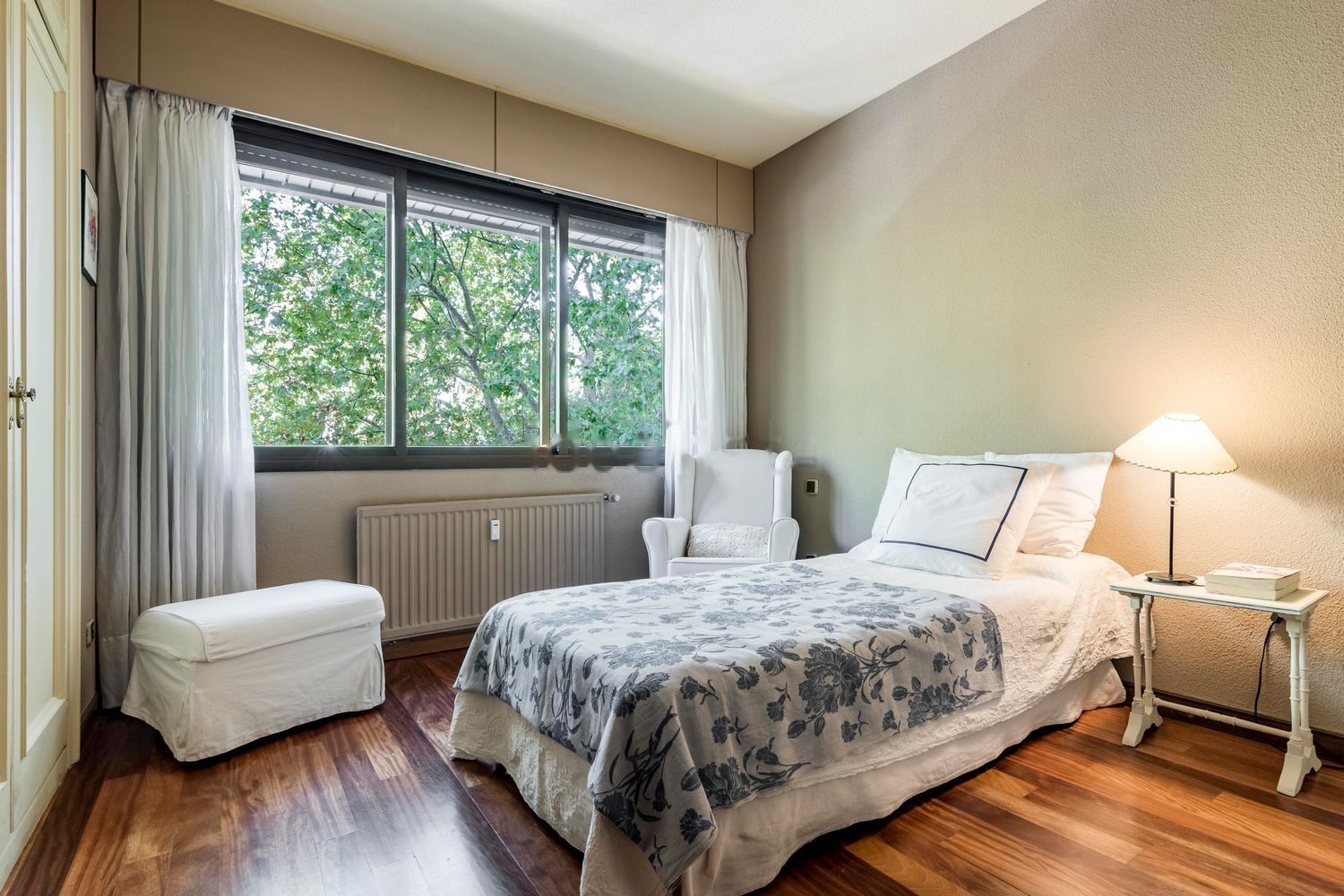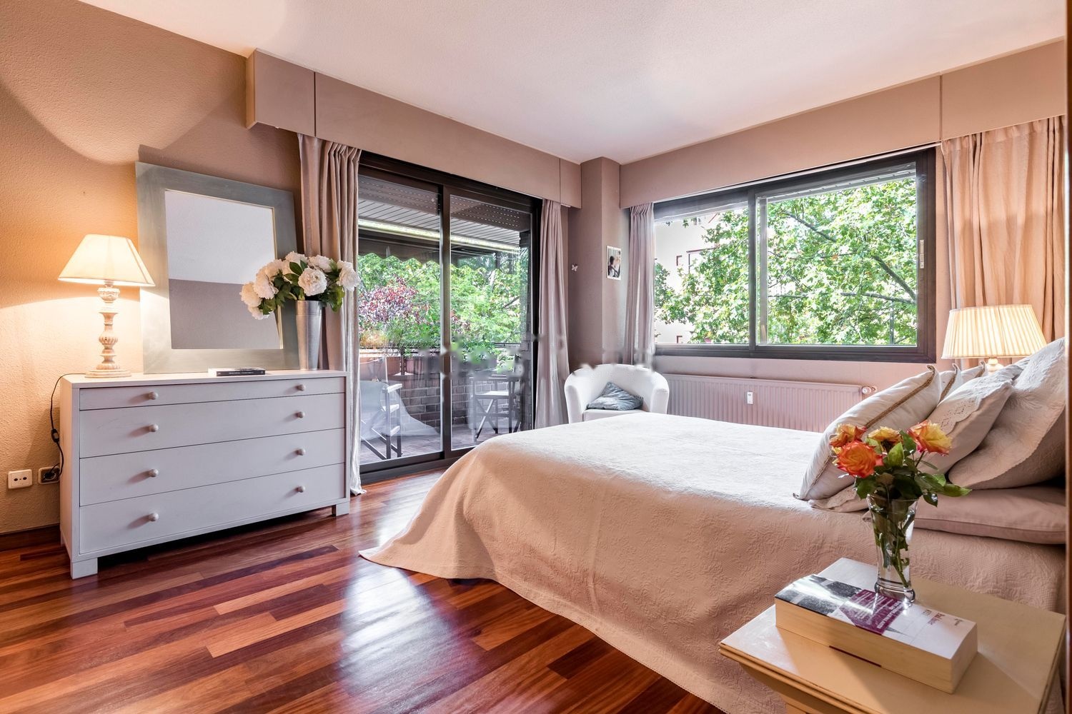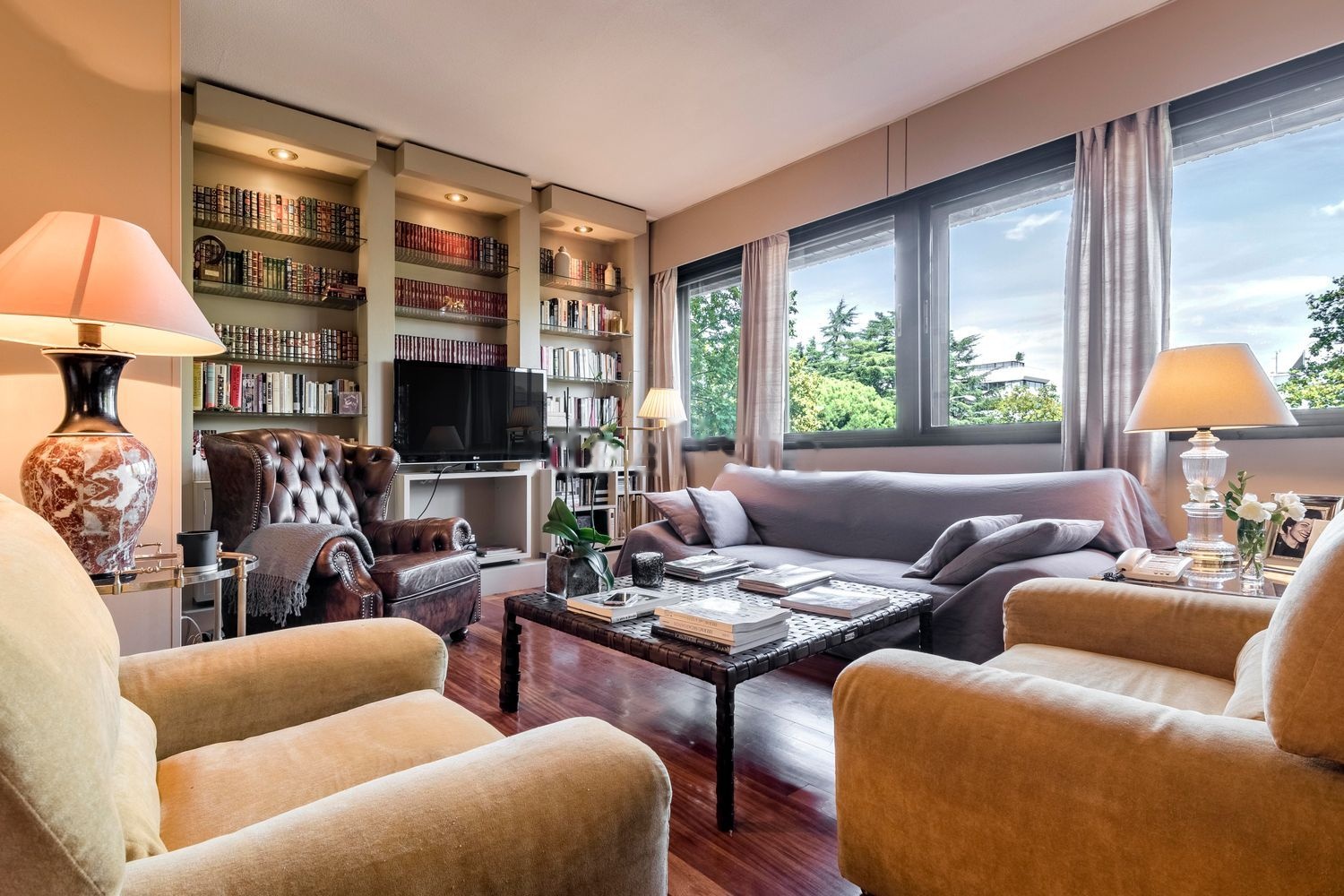 El piso, rodeado de vegetación y árboles centenarios, se caracteriza por su luz natural ya que recibe el sol en las tres fachadas orientadas al Este, Sur y Oeste. La vista excepcional de los árboles, es protagonista en los amplios ventanales que rodean toda la vivienda.