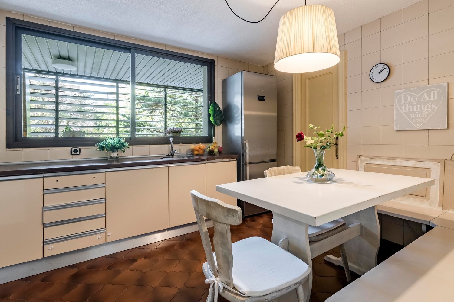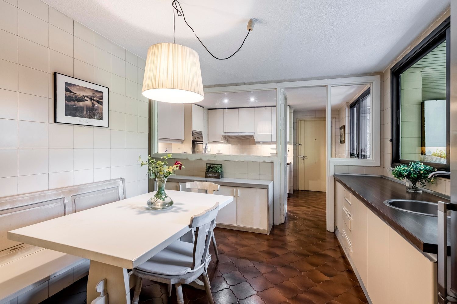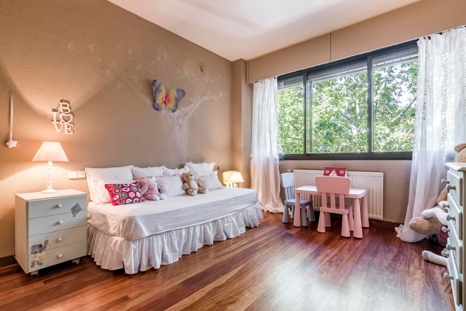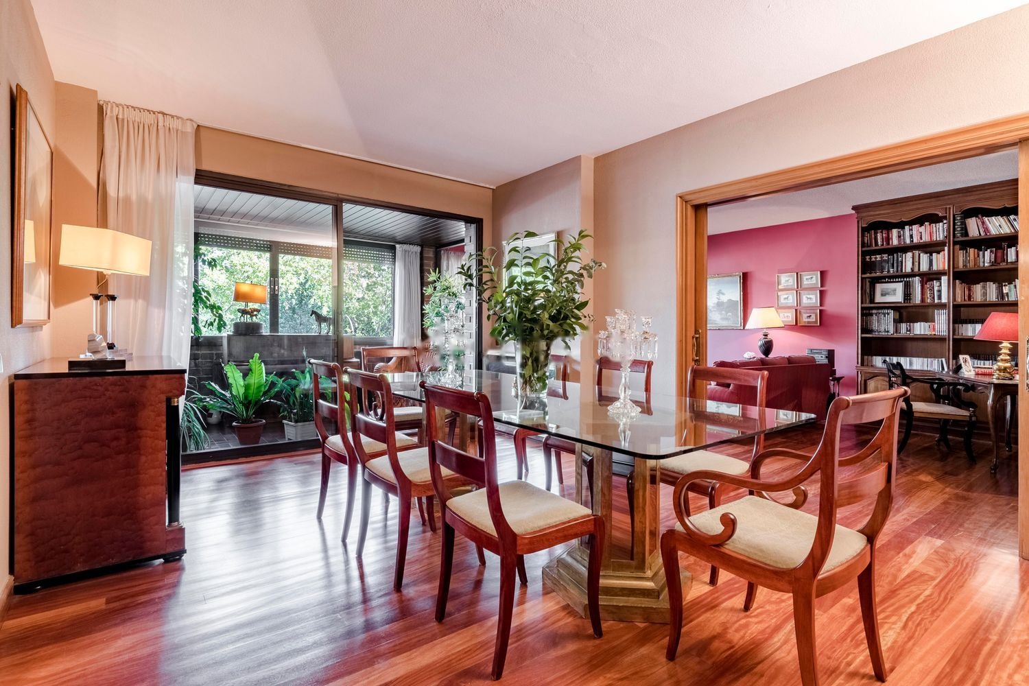 El piso, rodeado de vegetación y árboles centenarios, se caracteriza por su luz natural ya que recibe el sol en las tres fachadas orientadas al Este, Sur y Oeste. La vista excepcional de los árboles, es protagonista en los amplios ventanales que rodean toda la vivienda.