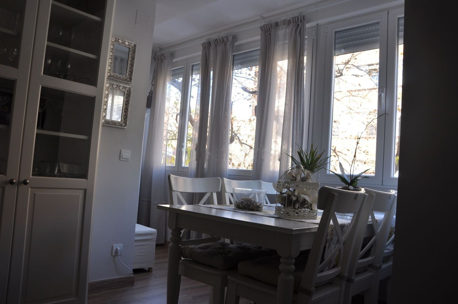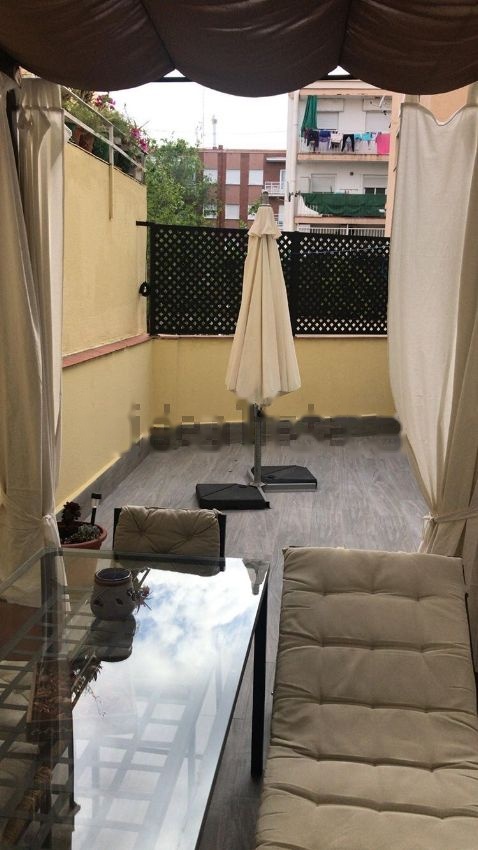 Piso muy bonito, DECORADO con mucho gusto al estilo moderno, todo recién reformado, parqué en toda la casa, todo pintado, baño, cocina, salón, 3 habitaciones, tuberías y luz totalmente nuevas, patio de 38m2 en forma de L, la primera parte con techo de policarbonato recientemente puesto y segunda parte con mesa, sillas y sombrilla. Ventanas de Climalit con rotura de puente térmico y persianas de aluminio nuevas en el salón. Toda la casa está amueblada con todo nuevo. Caldera nueva también con termostato inalámbrico. Tiene calefacción individual. La casa tiene doble orientación y todas las habitaciones dan al patio con lo cual no hay casi ruidos. La zona es buenísima y perfectamente comunicada, a 1 minuto andando del metro y de la parada de autobuses. También cuenta con un ático comunitario para poder tender si se quiere pero que con el patio no hace ni falta.