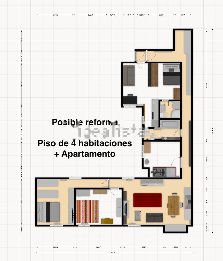 El inmueble, al contar con una estructura moderna sin muros de carga, ofrece variadas opciones de reforma incluyendo la posibilidad de segregar en un apartamento tipo estudio o de un dormitorio + un estupendo piso de 3 habitaciones.
