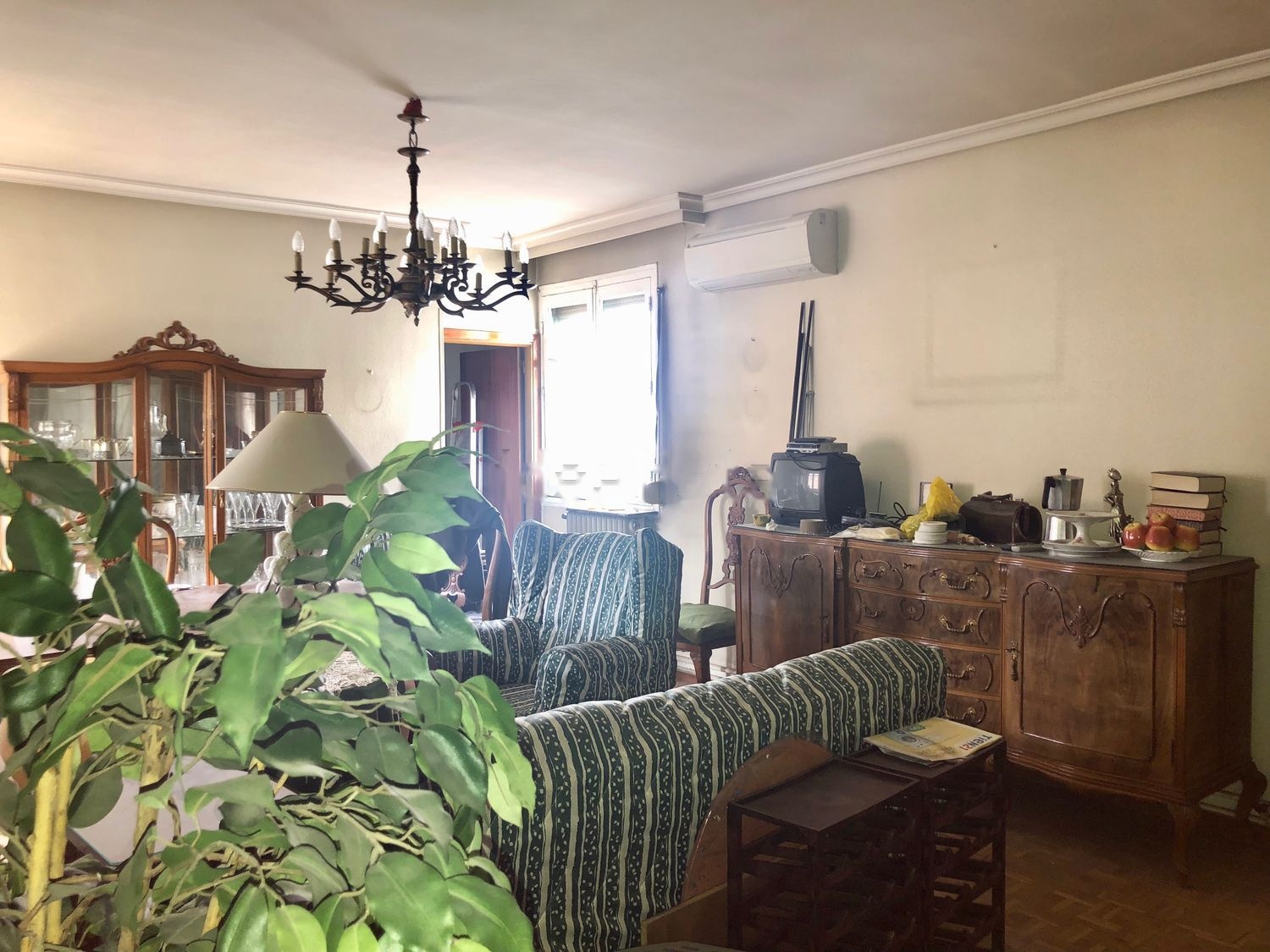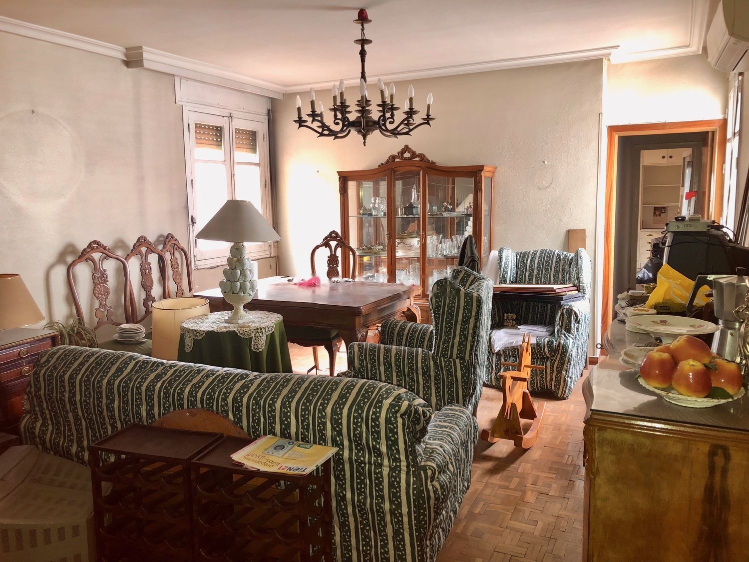 Actualmente tiene tres habitaciones grandes, un baño, un aseo, una cocina con office, un recibidor enorme y un gran salón.
