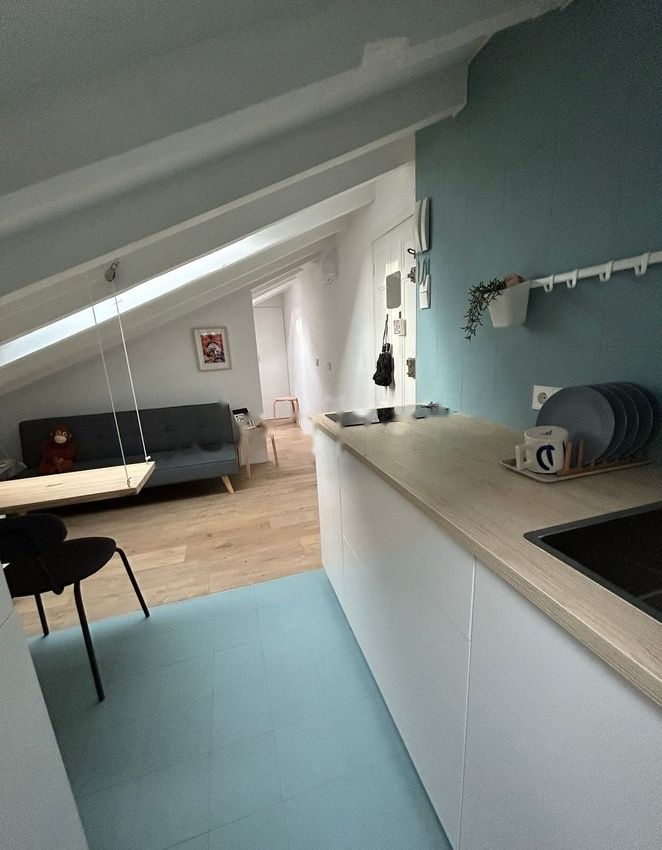 Pequeña vivienda abuhardillada de un dormitorio en Lavapies compuesta por salón-cocina, baño y habitación separada. Último piso (4) sin ascensor en corrala histórica del siglo XIX.
